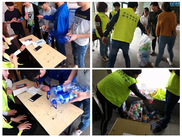 这支由大学生社团联合会和碧森环保协会共同组建的“绿色先锋”环保小分队是今年在学院团委倡议下,自发组建起来的一支以服务节约型校园创建,加强校内环保宣传教育工作的学生文明劝导队伍。每月最后一周周五上午,该分队将走进校内各办公楼对教师办公室各类废旧物品进行回收;每周五中午在各公寓楼下设设立“废旧物品回收点”,鼓励大学生们以寝室为单位将矿泉水瓶、废旧书本、快递包装盒等废旧物品送到回收点。