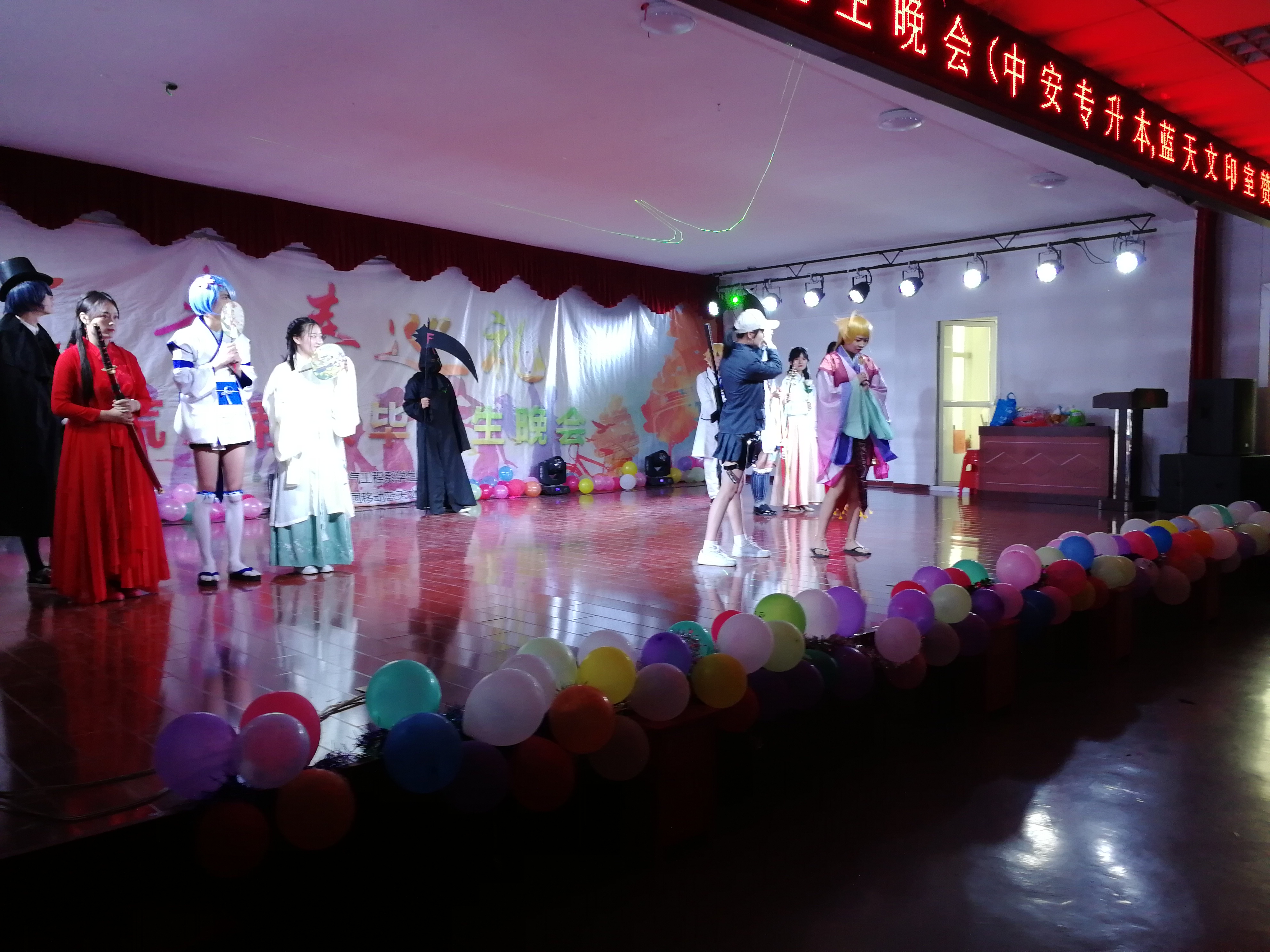 一场现代舞拉开了晚会的序幕,台下的观众欢呼雀跃氛Χ十分活跃,接着各个节目有序的表演着,台下也好不热闹。武术、cosplay、相声、现代舞串烧、吉他独奏等节目各具特色,晚会最后大合唱《再见》将晚会引入高潮,离别情绪随着歌曲释放着“我会牢牢记住你的脸,珍惜你给的思念,不回头不回头的走下去”
