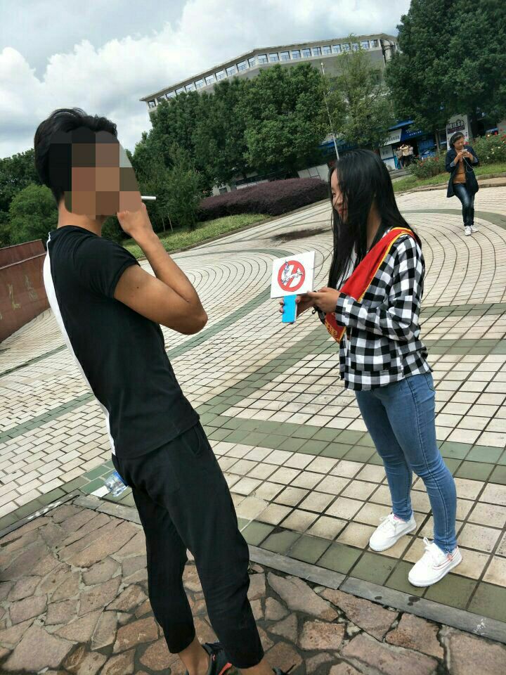 等这几个地点,带着控烟活动的标志语和标志牌,耐心的给同学们和老师讲解吸烟的危害等等。