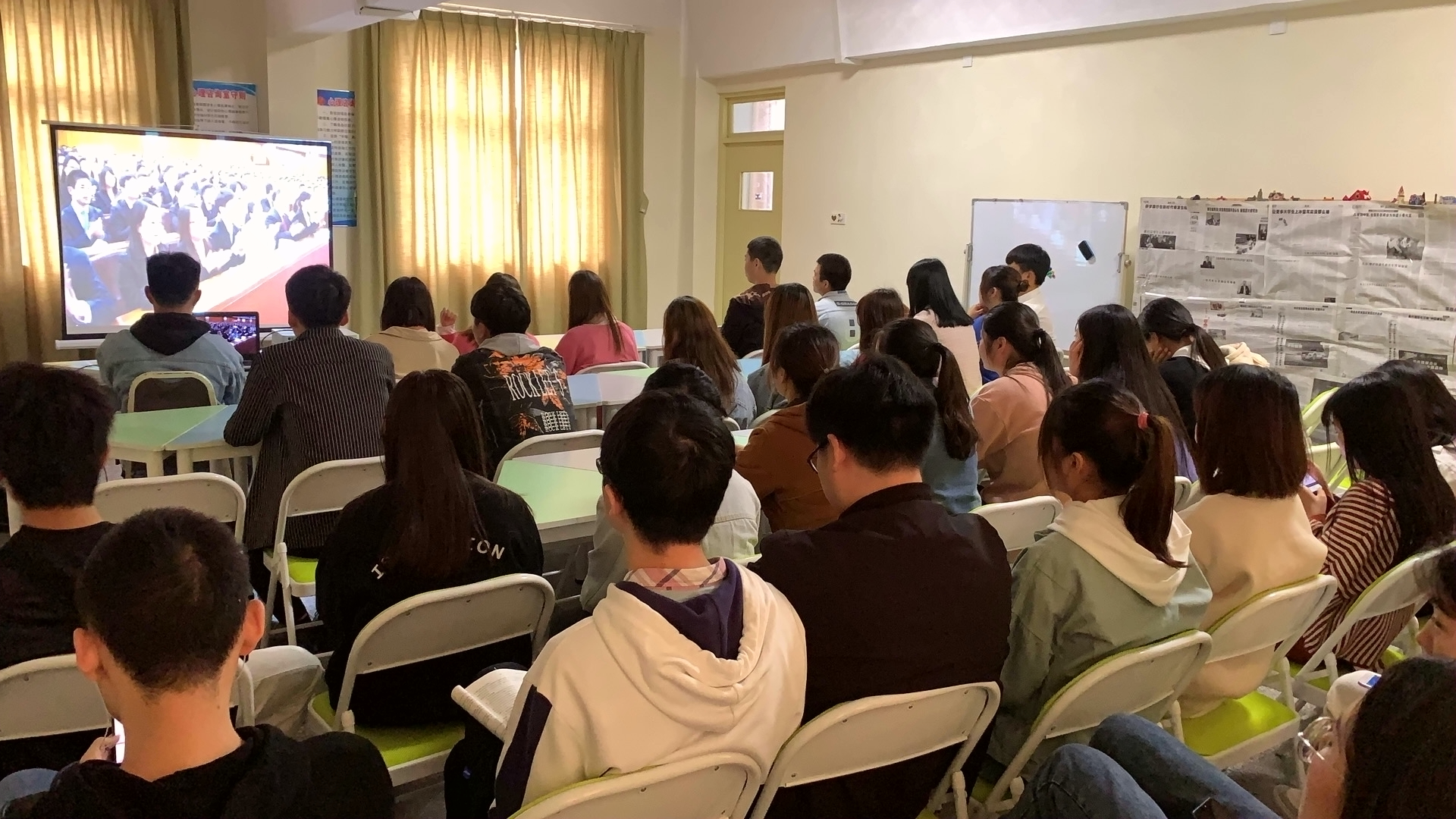 青年学生,是国家的希望,是中华民族伟大复兴的坚实力量,为纪念五四运动100周年,引领广大青年学生高举中国特色社会主义伟大旗帜,弘扬以爱国主义为核心的伟大民族精神,上午10时30分,学院团委组织学生在学生会办公室集中观看大会直播。
