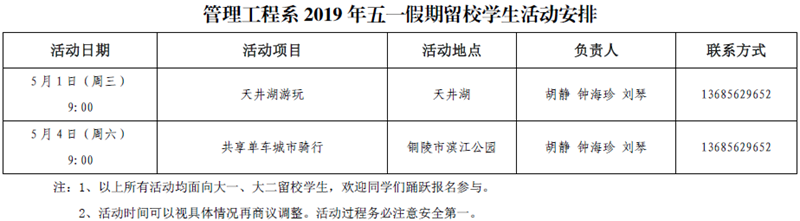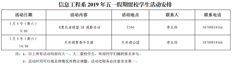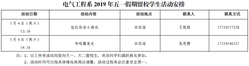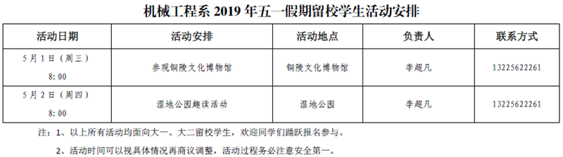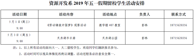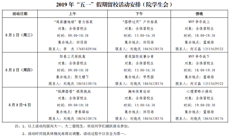 2019年五一假期留校学生活动安排