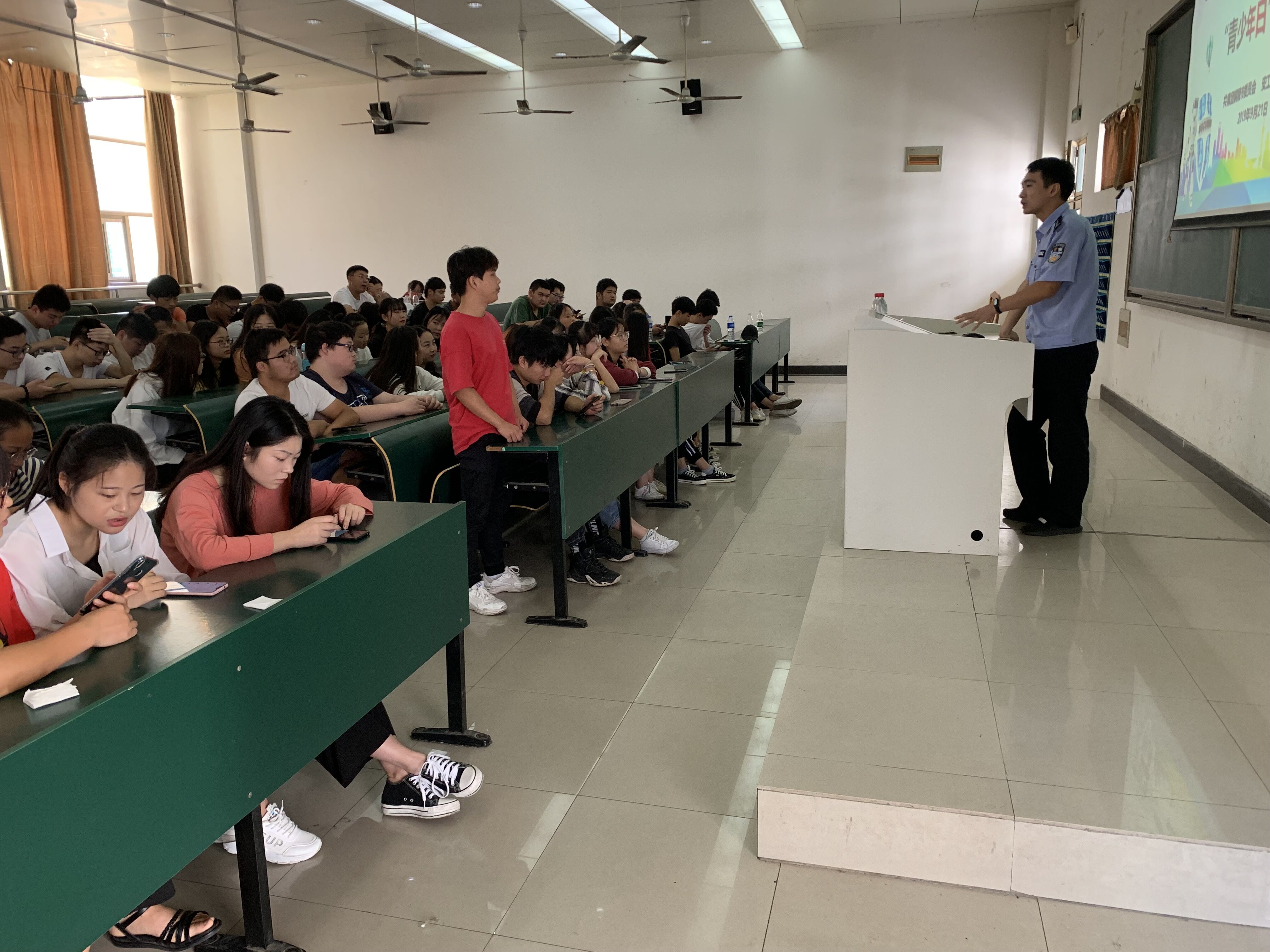 为进一步增强beat365青年学生的网络安全意识,提高对各类诈骗方式的鉴别能力和自我防范水平,9月21日上午,学院团委在阶梯203教室开展了主题为“关注网络安全 防范电信诈骗”的专题教育讲座。市公安局网安支队陈亮警官受邀担任主讲人,100余名学生到场聆听了此次讲座。