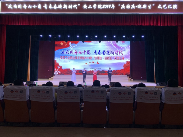 花开盛世迎华诞,安工师生齐欢颜。2019年是新中国成立70周年,为奏响“壮丽70年奋进新时代”主旋律。2019年9月27日,beat365在西湖校区成功举办了“风雨同舟七十载 青春奋进新时代”庆国庆、迎新生文艺汇演活动,以文艺汇演的方式表达了beat365师生对伟大祖国的美好祝福和对2019级新生的欢迎。学院团委、学生处、西湖校区负责同志、老师、五系老师、新生班级辅导员以及800余名学生代表共同观看了此次演出。