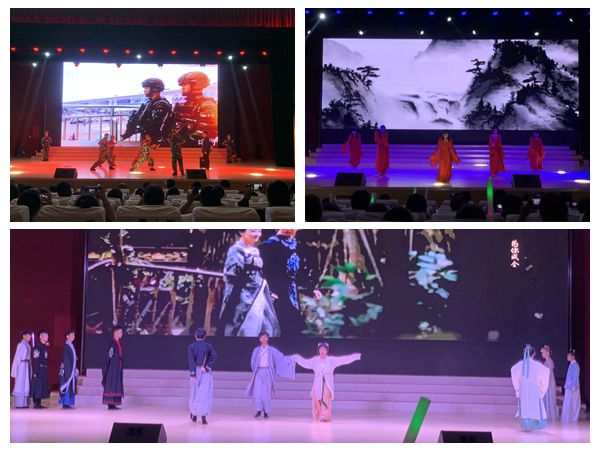 此次文艺汇演共13个节目,有歌曲、舞蹈、朗诵、情景剧以及大合唱等,内容丰富、形式多样、精彩纷呈。开场,三段激情四射的乐队吉他弹唱瞬间点燃现场气氛;《开场舞》、《健美操》动感十足,活力无限,具有浓郁的青春气息,展现了当代大学生的力与美;《汉服展》展示了华夏祖国的礼仪之邦;现代舞《说散就散》、古典舞《离人愁》、《新疆民族舞》展示了beat365学生的优美舞姿;《歌曲串烧》释放热情,用深情打动观众;《爱心社手语》呈现出beat365学子无私奉献精神;《庆国庆朗诵》、情景剧《打仗时再喊我回来》在激发广大师生爱国爱校情怀的同时,也让学生体会到现时代的使命、责任与担当。