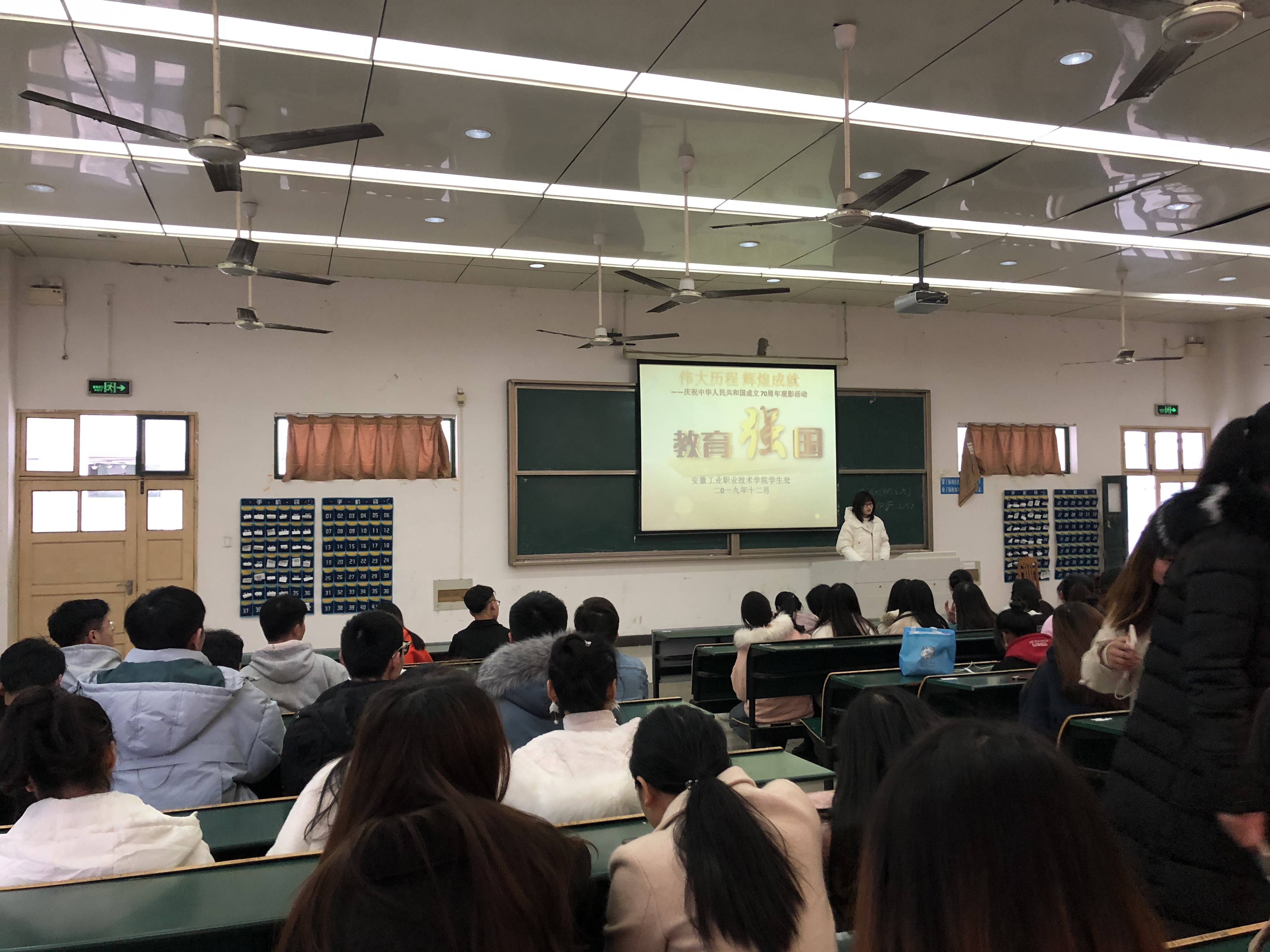 为深入学习贯彻习近平新时代中国特色社会主义思想,推进《新时代爱国主义教育实施纲要》贯彻落实,立体式运用爱国主义教育优质资源,12月13和19日,学院在天井湖校区及西湖校区分校区组织学生参加了庆祝中华人民共和国成立70周年爱国观影活动,共有240名同学参加了此次活动。