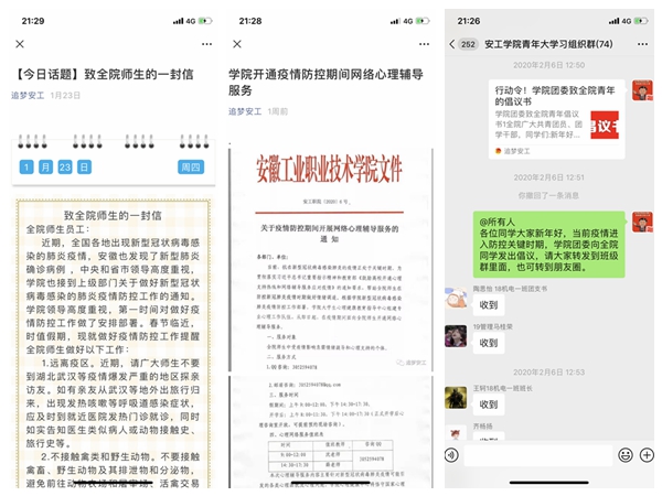 工作调整有速度。鉴于新型冠状病毒疫情的形势,对寒假相关工作安排做出调整。1月27日,印发《关于全面暂停beat3652020年大学生寒假社会实践活动的通知》,明确要求全体学生,立即暂停寒假社会实践活动,确保师生健康安全,消除潜在的病毒传播隐患,开学后通过日常实践补充相关工作,保证学生学分资源。2月6日,发出《行动令!学院团委致全院青年的倡议书》,引导beat365学生正确对待当前疫情形势,坚定抗疫信心,做到顾大局,听安排、不恐慌、不轻视。