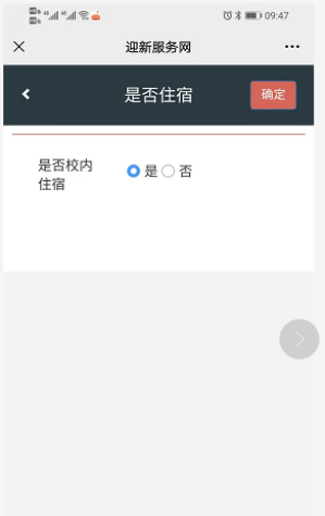 5、进入“是否住宿”环节后,如需在校住宿请选择“是”,不在校住宿请选择“否”。如下图:
