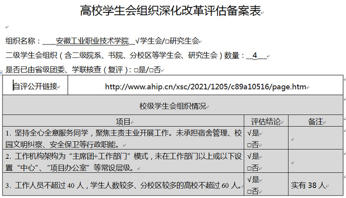 为落实共青团中央、教育部、全国学联联合下发的《关于推动高校学生会(研究生会)深化改革的若干意见》,接受广大师生监督,现将我校截至2021年11月学生会改革情况公开如下。