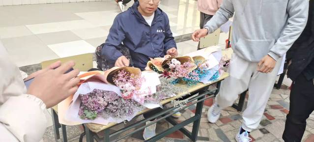 在本次活动过程中,同学们把要售卖的商品依次摆好,供同学挑选。既有做漂亮美甲的,也有非常美丽的花束,有缤纷的气球,还有男女生互抽微信的趣味摊位。摊主们纷纷脑洞大开,抓住商机,场面气氛热闹非凡。