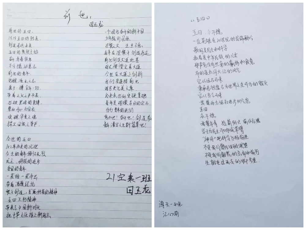 通过举办这次诗歌创作活动同学们深入了解了五四运动的历史意义,培养了青年学生的爱国情怀,激励同学们做激流勇进、不负韶华的新时代接班人。(撰稿:夏鹏宇 审稿:彭林)