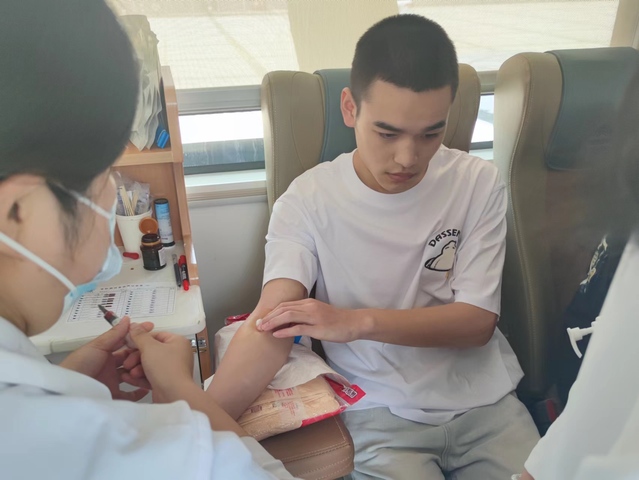 同学们在进行活动时,负责人有序的进行登记,健康筛选,血液检测,等待结果,检测合格后进行血液采集,采集完成后有序领取献血证离场。