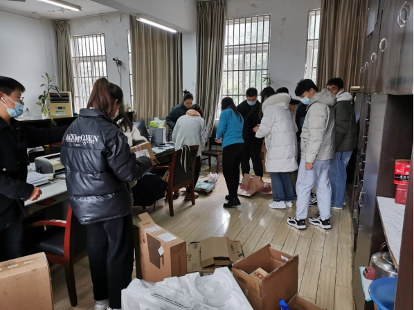 接到指导老师布置的任务后,社长立即组织社团成员开始报名,同学们报名积极踊跃,最终选取报名靠前的10位同学参与本次活动。当天中午参与报名的10位成员先在校园回收站集合,并由社长交代活动流程,随后在社团指导老师及社长的带领下来到第一行政楼二楼,与早已等候的计财处老师们进行交流,确定需要处理的废旧纸箱后,社团成员们一起整理、称重、记录等。