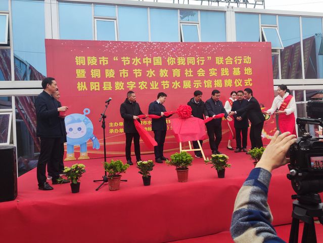 活动伊始,铜陵市水利局、团市委、枞阳县政府、枞阳县水利局、有机地表公司代表等各部门代表人分别做了节水发言,同学们听后深有感触;随后各位代表们进行了揭牌仪式;最后同学们前往实践基地参观,听工作人员讲解节水知识,接受电视台采访等。