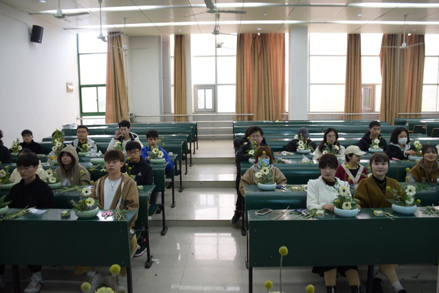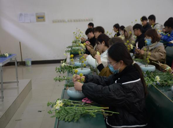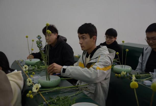 为弘扬普及传统文化,体验中式插花的美学思想,3月17日下午,学院在教学楼阶梯203教室举办了一场与花共舞的艺术沙龙,40余名新疆少数民族学生与汉族学生共聚一堂,在这个春天与花相伴。