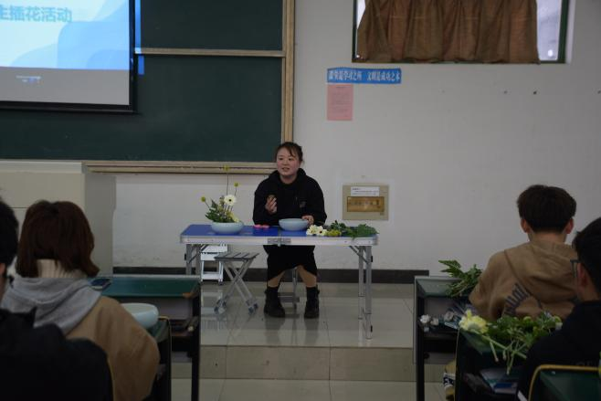 学历史、解渊源。活动开篇,学生处负责新疆生工作的老师为同学们讲解了中式插花的起源与发展,介绍了从秦汉至明清不同朝代不同人文环境下的插花艺术,并比较了中西方插花艺术的两种体系,同学们听后受益匪浅。