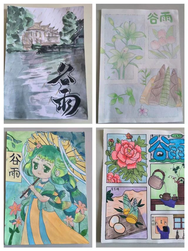 此次活动中,同学们通过搜集二十四节气之一谷雨传统节气的资料,运用自己的绘画技巧、色彩搭配等,通过一笔笔的勾画,上色构成一幅幅精美的插画,可以看出同学们认真的态度和热爱,且涌现出了比较多优秀的作品。由此也让充实忙碌的日子变得更加有趣,富有色彩。