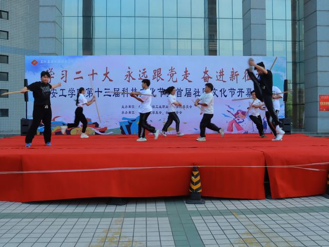 为充分发挥学院社团繁荣校园文化的作用,全面发展学生综合素质,营造积极向上的艺术氛围,学院团委于4月21日下午在教学楼前广场举办了“学习二十大、永远跟党走、奋进新征程”第十三届科技文化节暨首届社团文化节文艺汇演,19个学生社团及学生会等团学组织参加了演出,现场气氛热烈。