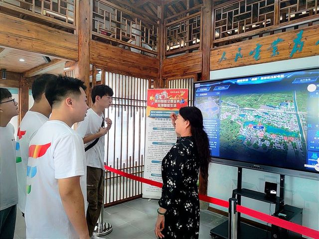 在犁桥水镇,实践队员们先后来到犁桥老街、万丰塔、宴会楼、酒吧岛等主要景点感受水镇各类软硬件建设情况和接待服务能力建设情况,认真听取讲解员关于古镇综合开发情况的介绍,详细了解了水镇如何在保护犁桥原生态的基础上,将民俗文化展示、农耕文化体验进行全面结合、展示的相关做法。