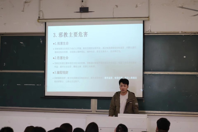 活动伊始,主讲人向广大同学介绍了“什么才是邪教”、“邪教对社会的危害”、“邪教的骗人手段主要有哪些”“如何防范抵制邪教”,并发出倡议:希望广大同学相信科学,崇尚科学,反对邪教;健康生活,预防疾病;遇到邪教,及时报告公安机关;构建和谐,从我做起。利用中国反邪教微信公众号、校园广播、电子屏等宣传工具,广泛开展宣传活动,营造学院反邪教警示宣传活动氛围,更好的帮助同学直观形象地认识邪教的危害性。用生动鲜活的实例宣传让同学自觉树立“崇尚科学,反对邪教”的观念,提高辨别是非真伪的能力,从而增强法律意识,远离邪教。