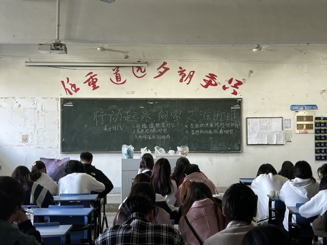 活动中,主讲人引导学生分析艾滋病会通过哪些渠道染病,使学生认识到养成良好健康生活习惯的重要性,努力避免血液感染,不到不正规的医疗场所打针、输液,而且注意养成良好的生活习惯,如不与他人共用牙刷、牙签等。同时告诉学生不必过于紧张,了解握手、进餐、拥抱等一般不会传染艾滋病,让学生不惧怕、不歧视艾滋病病人和病毒感染者,学会正确对待他们,并通过预防艾滋病知识测试等形式广泛宣传防艾知识,使学生们进一步认识和了解“防艾”的必要性和重要性。