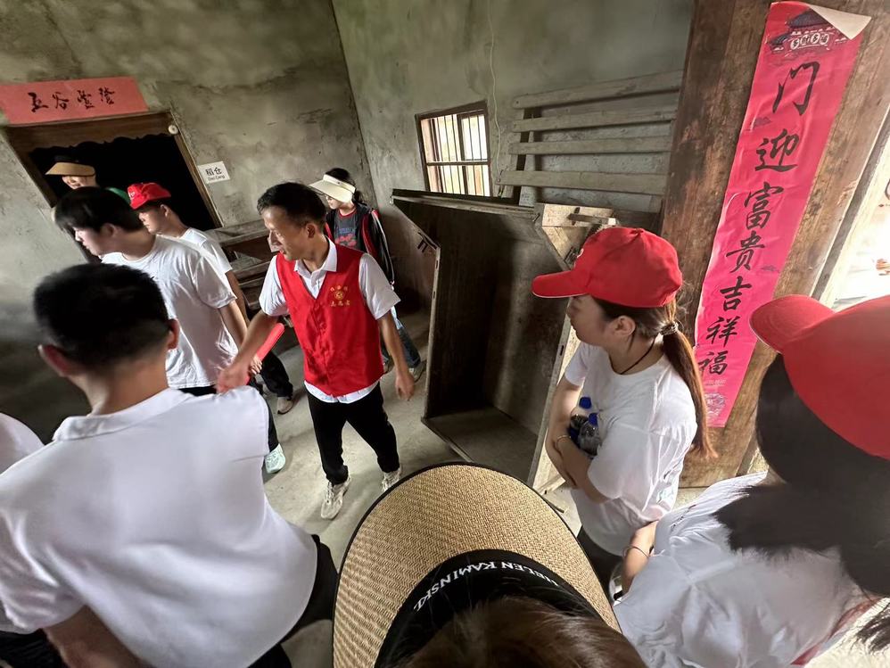 接着,实践队员在村干部的带领下,参观了星月村乡村文化建设,在文化墙上映入眼帘的是非遗传统文化“板凳龙”,家家户户的门牌上都有含“龙”字的成语,每逢重大节日时,村民便舞龙庆祝;在村“耕读馆”,村干部向队员们介绍了上世纪五六十年代的村民们使用过的耕种农具和当时学习文化知识的场景。通过参观,队员们深切感受到了乡村文化振兴的魅力。