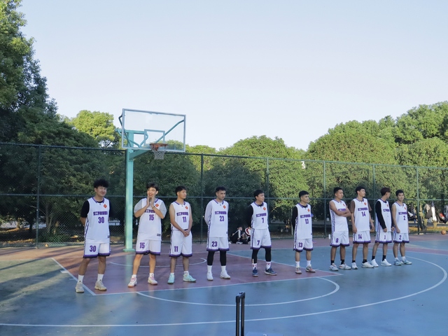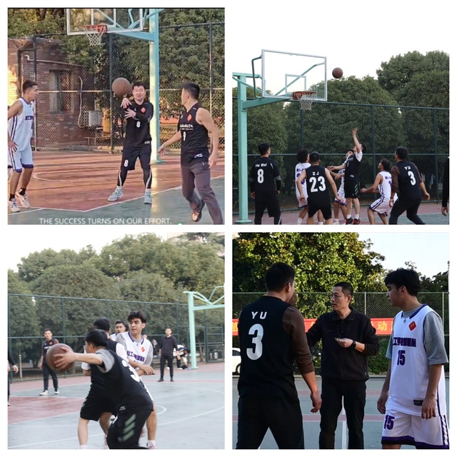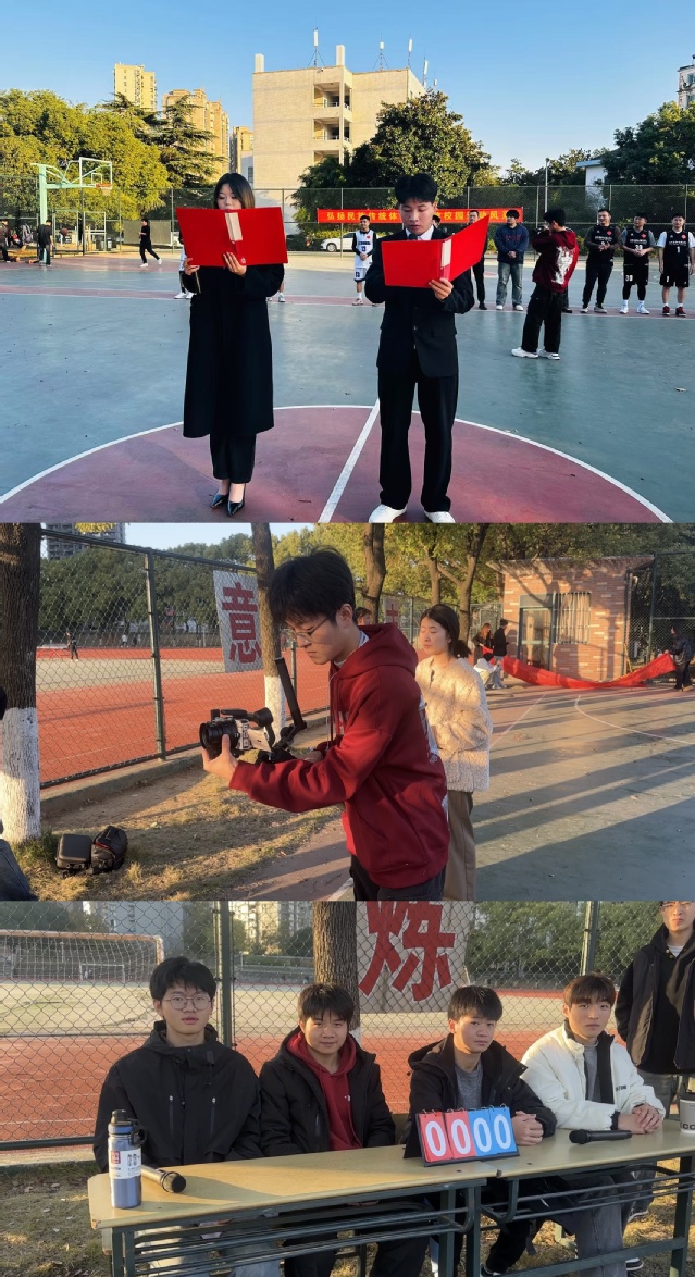 冬日温暖的阳光洒落在篮球场,师生篮球友谊赛正式开始。工作人员、运动员、裁判员一一就位。