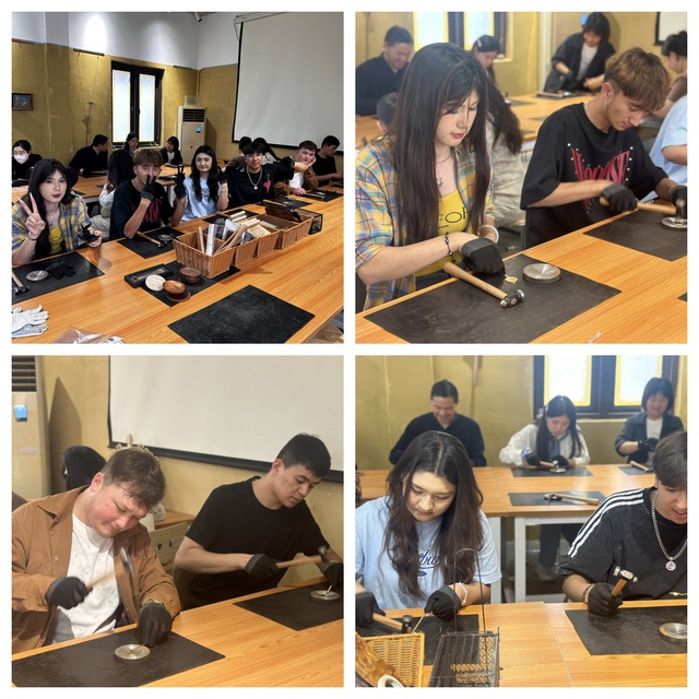 随后,学生们来到铜勺铸艺体验区,开启了一场别开生面的手工体验之旅。在专业技师的指导下,学生们亲手参与铜勺的铸造过程。从融化铜料到浇铸成型,再到打磨抛光,每一个步骤都充满了挑战与惊喜。尽管初次上手,动作略显生疏,但学生们都全神贯注,积极尝试。当看到自己亲手制作的铜勺逐渐成型,那份喜悦与成就感溢于言表。