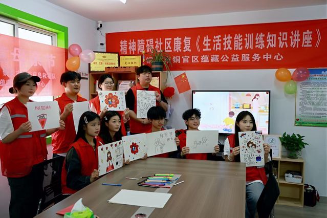 在母亲节这个充满爱与感恩的日子里,为了让特殊家庭感受到社会的关怀与温暖,5月11日,学院团委组织青年志愿者走进铜官区蕴藏公益服务中心官塘社区站点,开展“温暖相伴・‘心’意母亲节”活动,8名青年志愿者协会成员与特殊家庭的妈妈和孩子们共度了一段温馨难忘的时光。