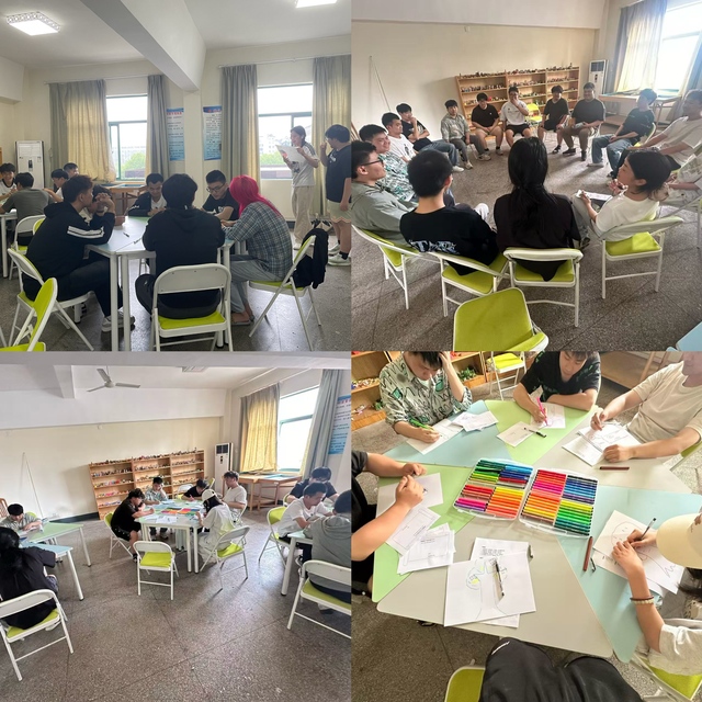 各班级开展的“心向暖阳,悦纳自我”主题班会成为心理建设的重要阵地。通过“情绪天气预报”“优点轰炸”等互动环节,学生们在分享中学会接纳情绪波动,在小组讨论中掌握压力应对技巧。辅导员借此契机深入了解学生状态,推动“班级心理支持圈”的建立,不少班级现场形成“互助结对”,让心理健康教育真正融入日常班级生活。 两期“亲疏有度 自在相处”心理团辅活动则聚焦人际交往难题。19名参与者通过“红黄蓝”人际边界圈绘制,用不同颜色划分心理安全区与禁区,直观理解边界的重要性;在“情景对话模拟”中,学生们通过角色扮演练习非暴力沟通句式,在“优点轰炸”游戏中突破社交焦虑。“原来拒绝别人时可以先说‘你的请求我需要时间考虑’”,“发现自己的优点被别人看见,突然有了自信”——参与者的反馈彰显了团辅活动在提升共情能力、构建健康社交模式中的独特价值。