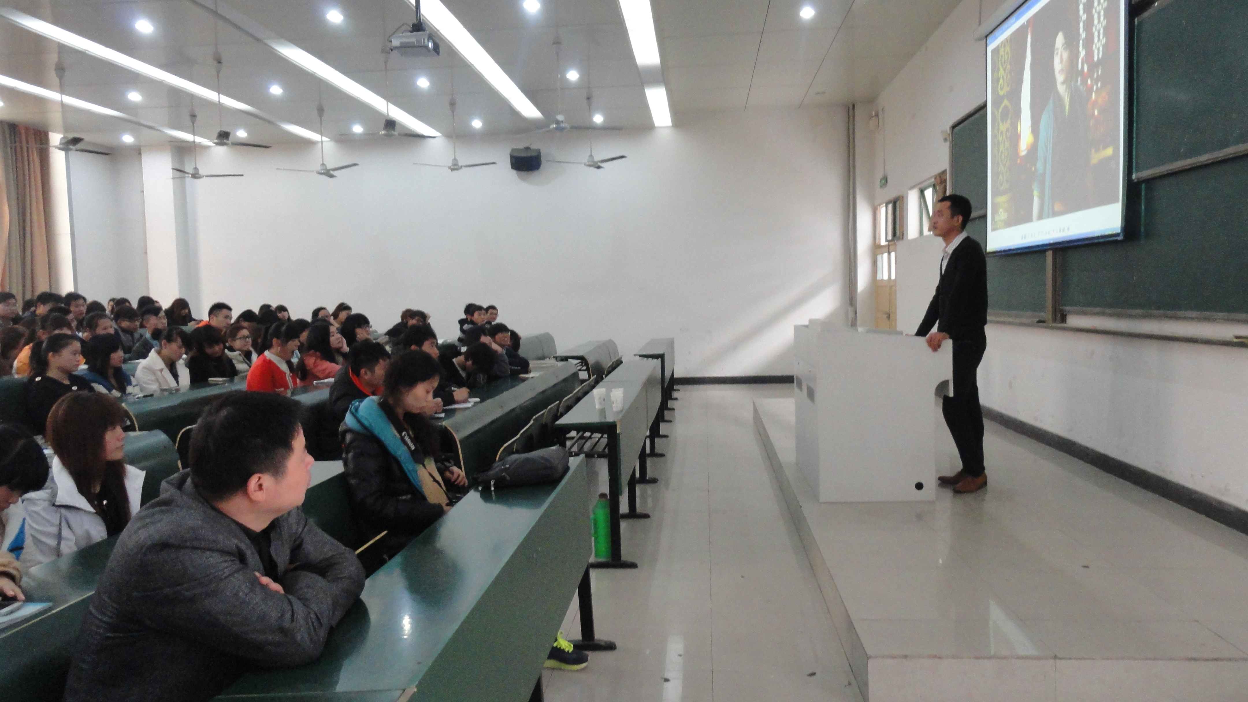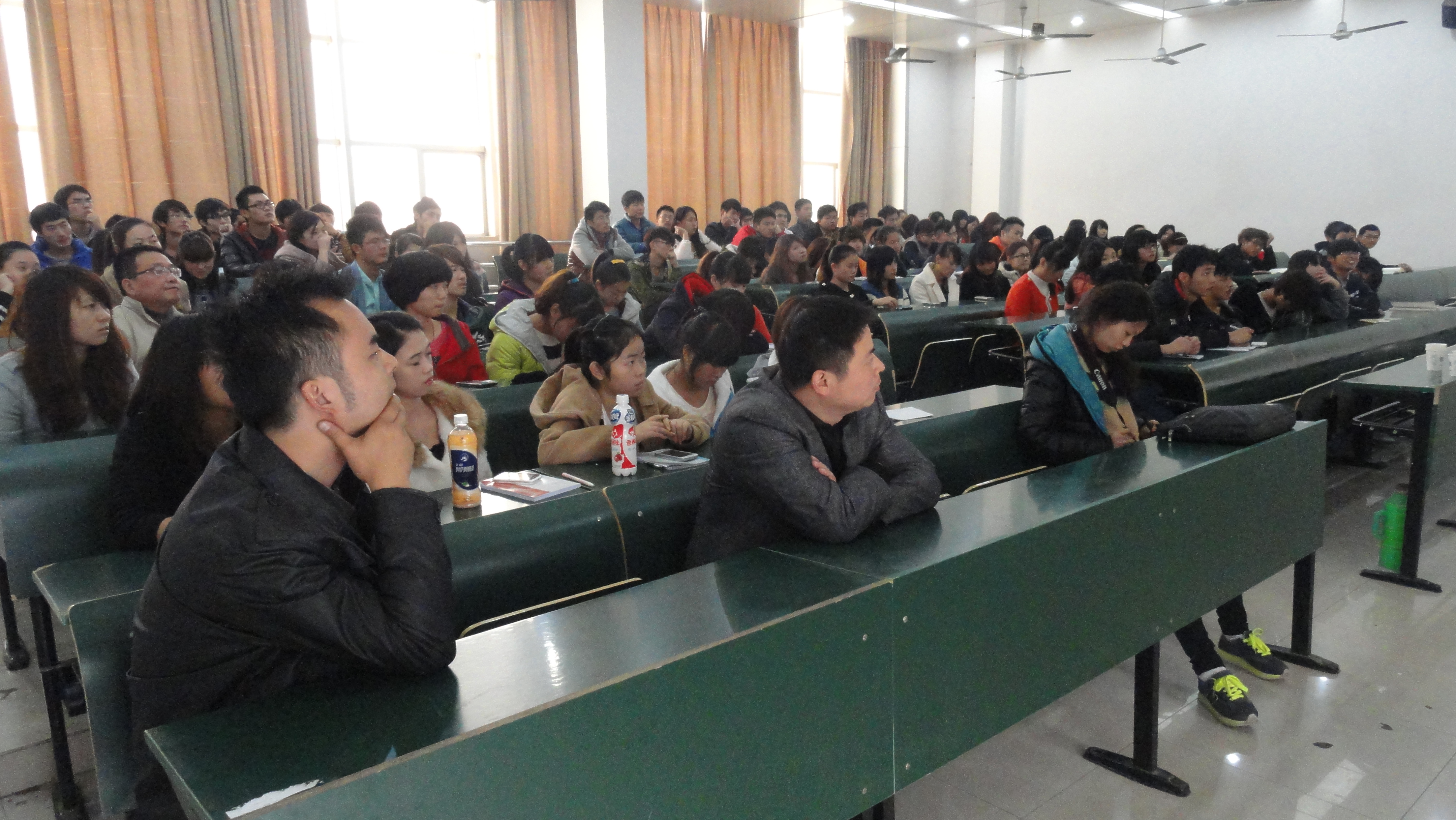 11月22日,12动漫班、12多媒体班、13动漫班、13多媒体班和13装潢设计班的同学来到教学楼阶梯202教室热烈欢迎铜陵春秋装饰公司檀总来到我系举办装潢设计专业讲座。教务处主任罗海峰和艺术设计教研室的各位老师也一起聆听了讲座。
