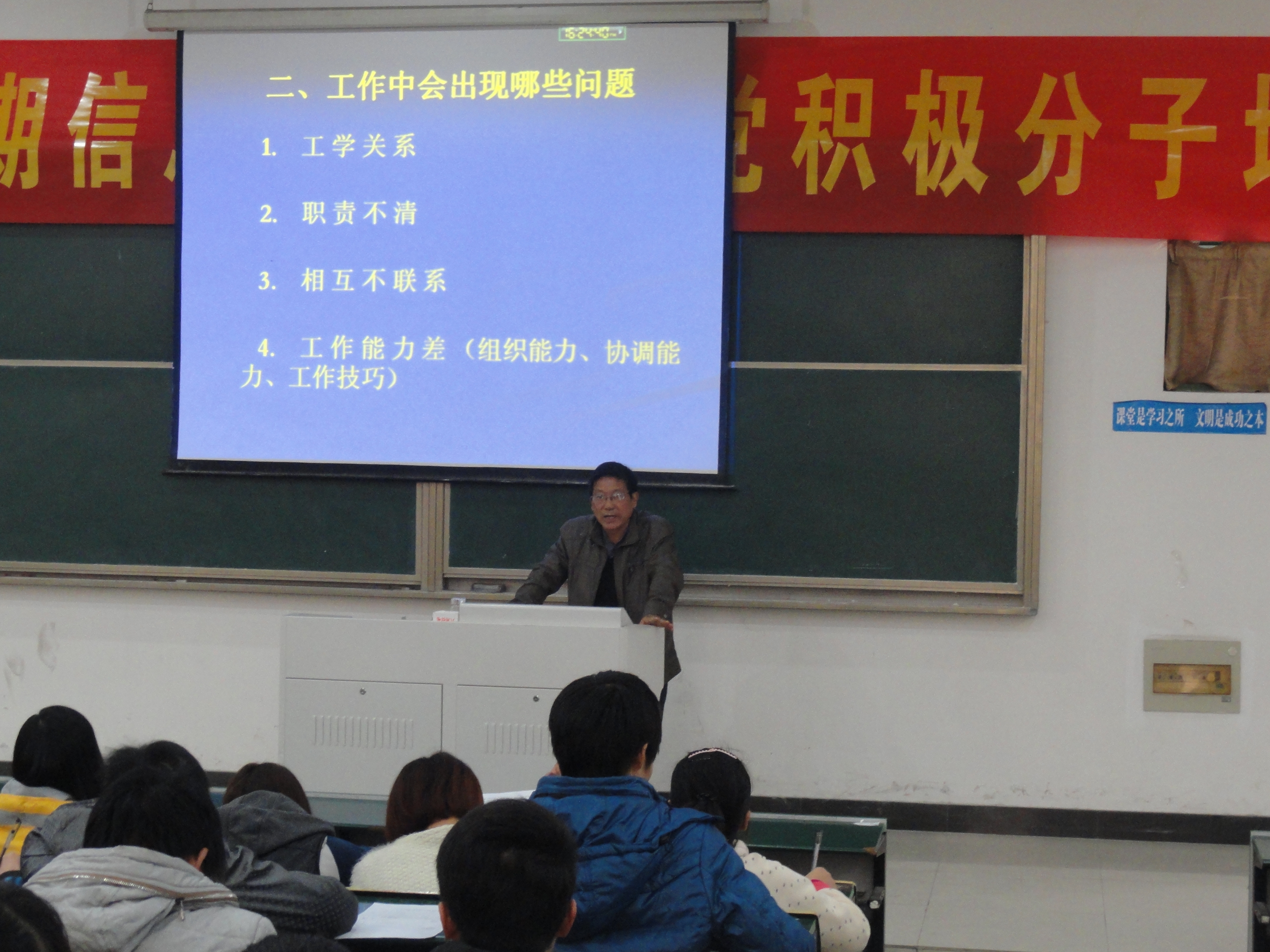 为加强高校学生入党培训工作,深入学习和认真学习贯彻党的“十八大”会议精神,深入贯彻落实科学发展观,切实加强对入党积极分子的培养教育。信息工程系党支部于11月下旬至12月上旬举办了一期入党积极分子培训班。本期培训班为期两周,学习的主要形式为:专题讲座、共同宣誓、座谈讨论、撰写学习心得等。