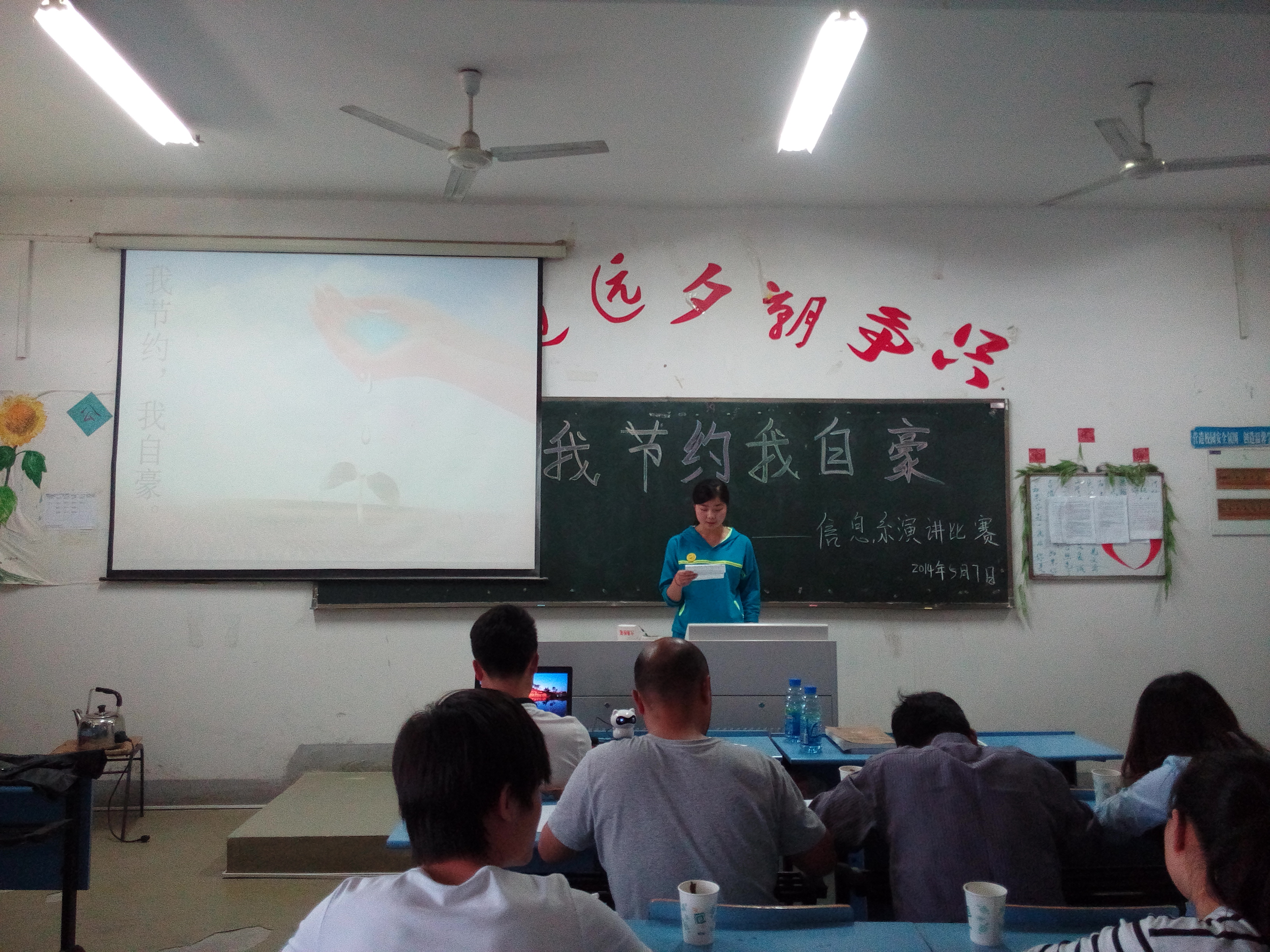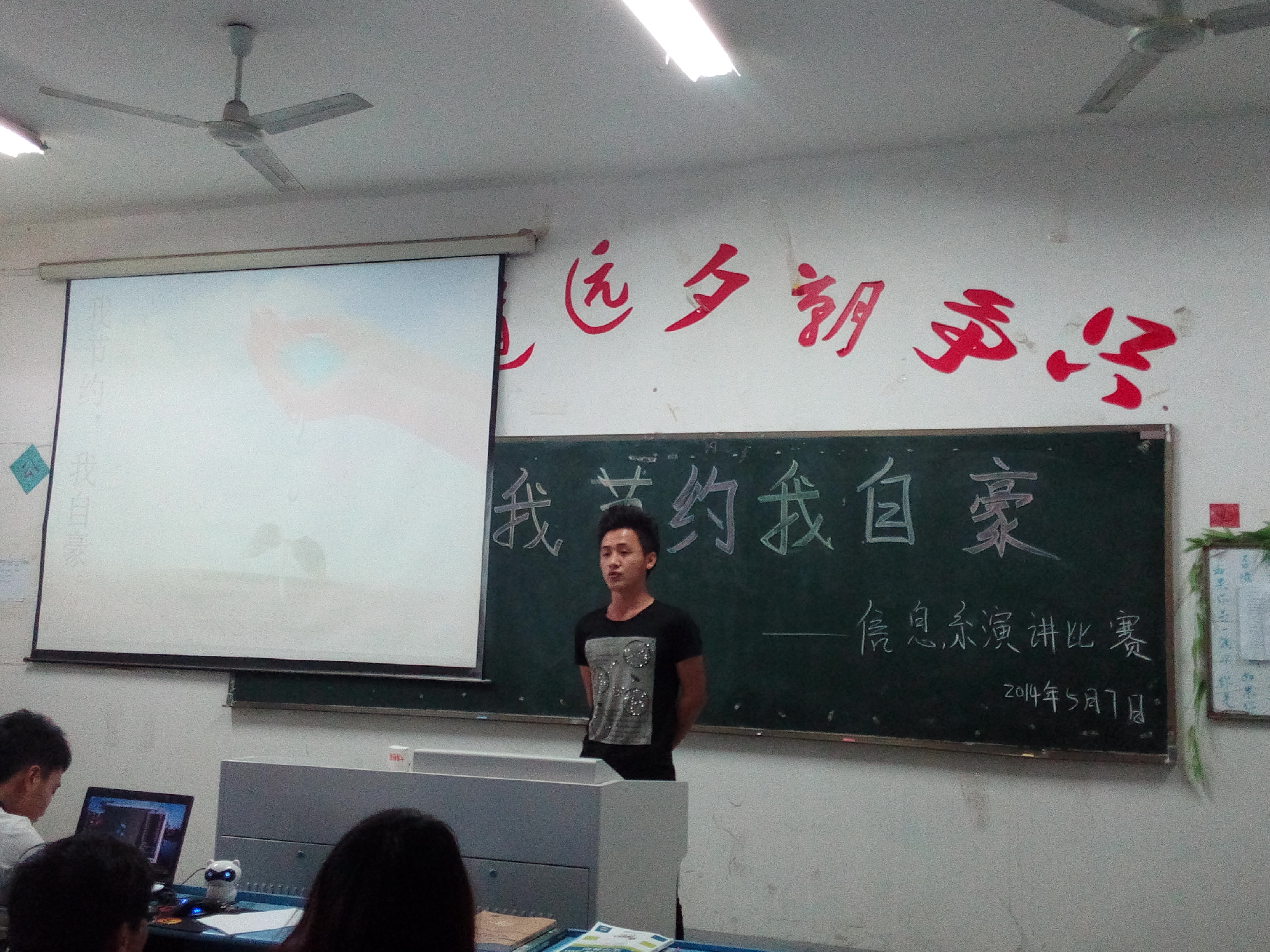 为积极宣传和响应学院建设“节约型校园”的良好氛围,增强资源节约的紧迫感和责任感,树立“节约光荣、浪费可耻”的观念及健康的生活方式和科学的消费理念。信息工程系举办了“我节约丶我自豪”主题演讲比赛。