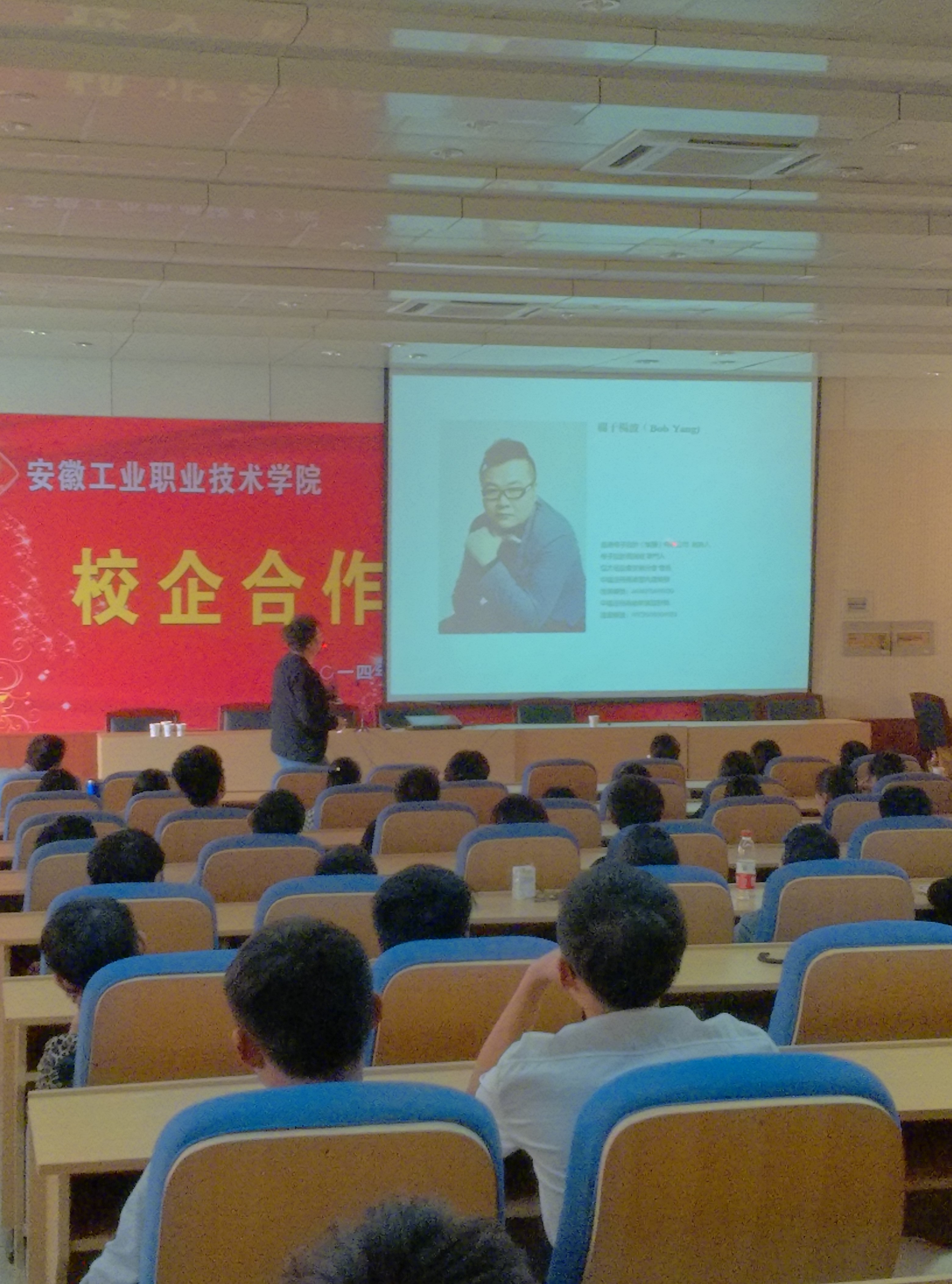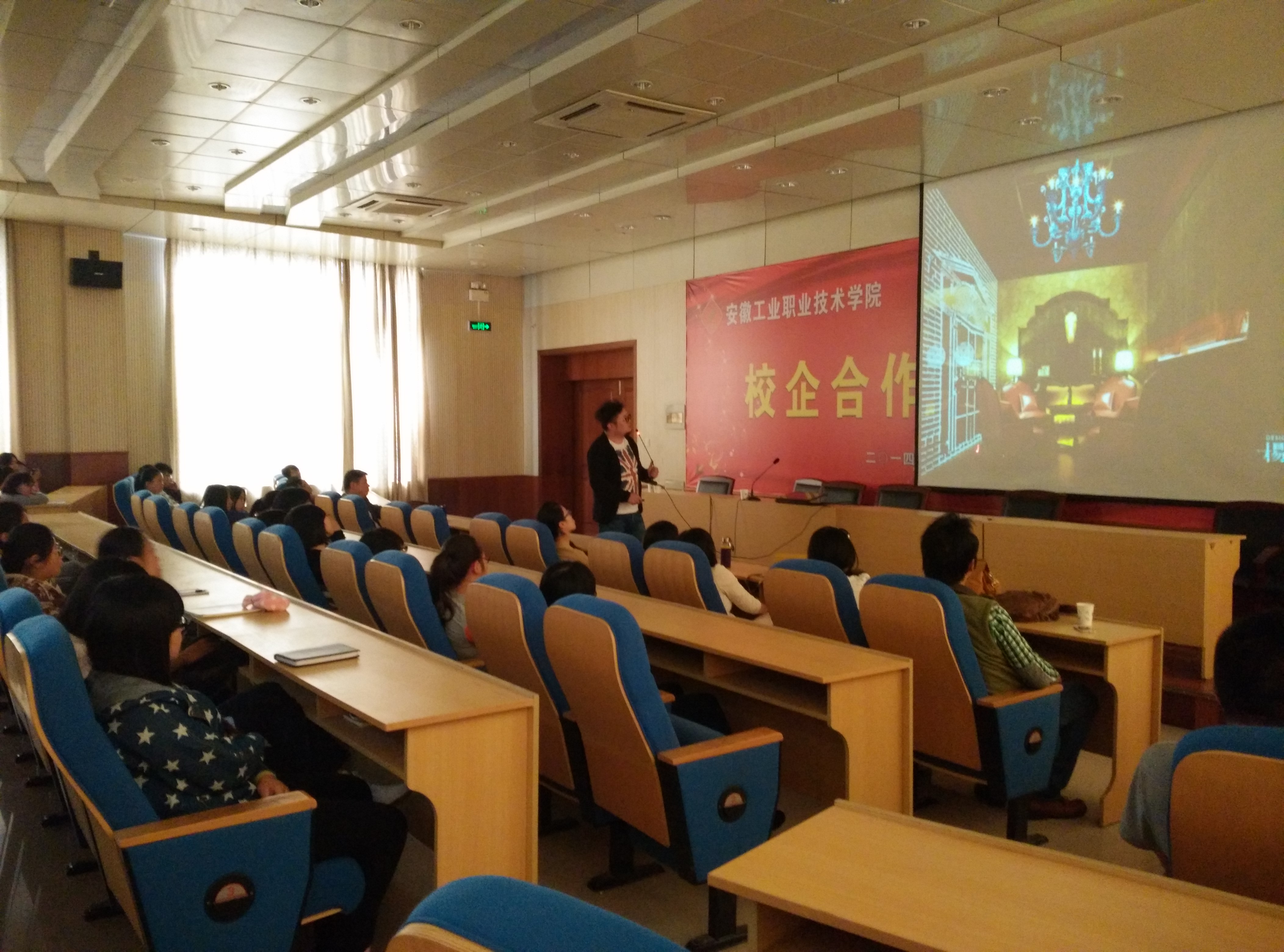 讲座于10月17日下午2:00准时开始,阶梯教室301坐满了前来听讲座的师生。在陈树贤老师的主持下,杨波董事长首先介绍了他对于设计的认识和理解。然后,结合他的设计案例,对于设计的过程和如何表达自己的设计思路进行了详细的阐述。在讲述的过程中,对于精彩的设计内容,同学们纷纷报以热烈的掌声。
