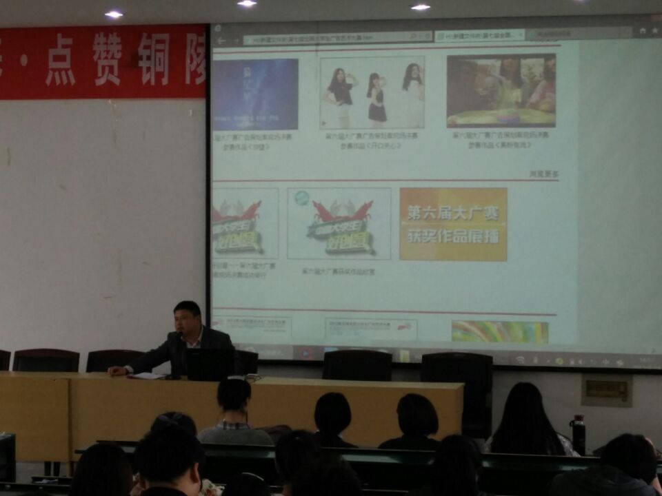 4月24日下午,信息工程系举办的第七届全国大学生广告艺术大赛动员大会于教学楼阶梯教室201举行,13级和14级动漫班、多媒体班和装潢班全体学生及艺术设计教研室的全体教师参加了动员会。
