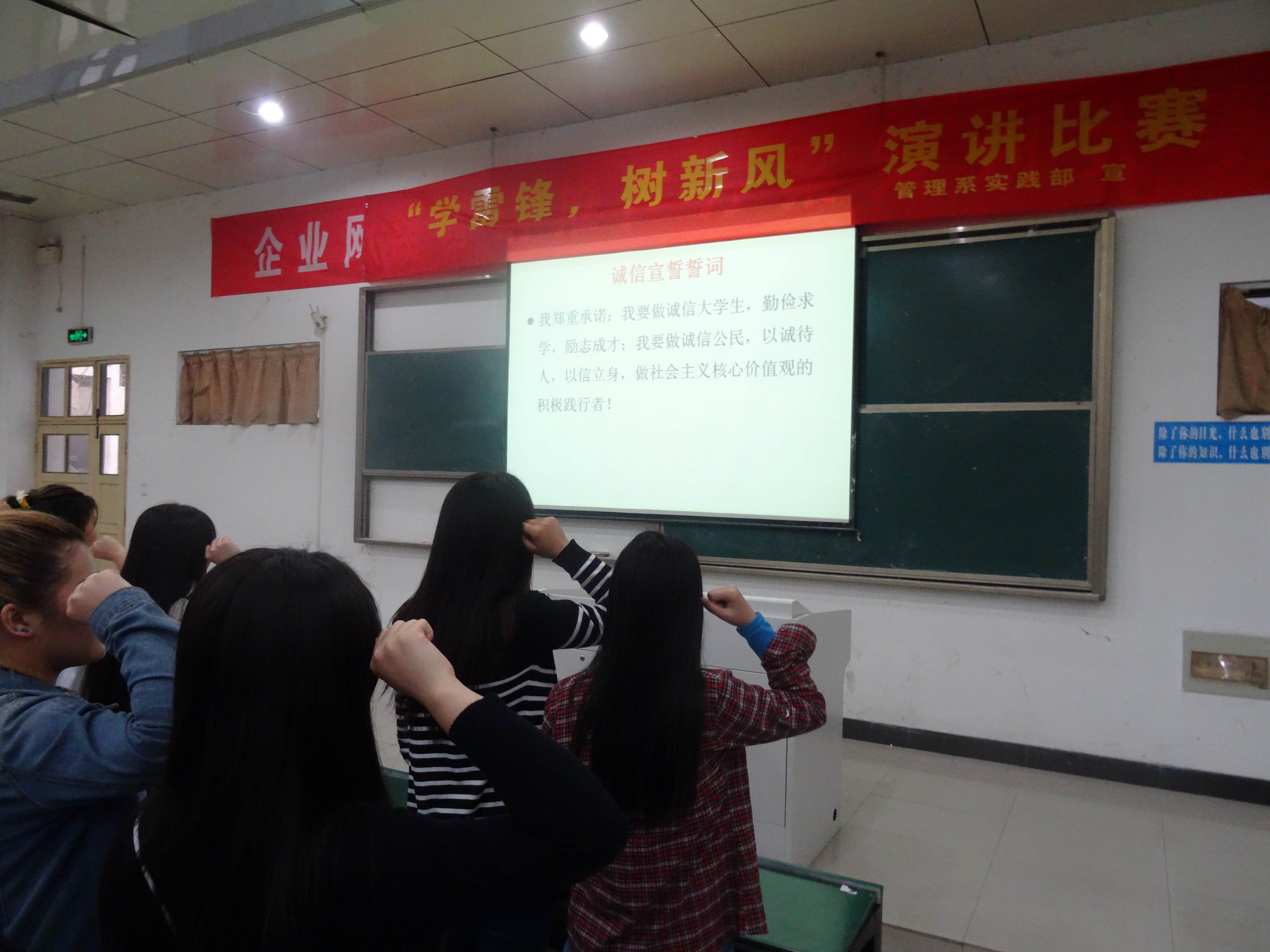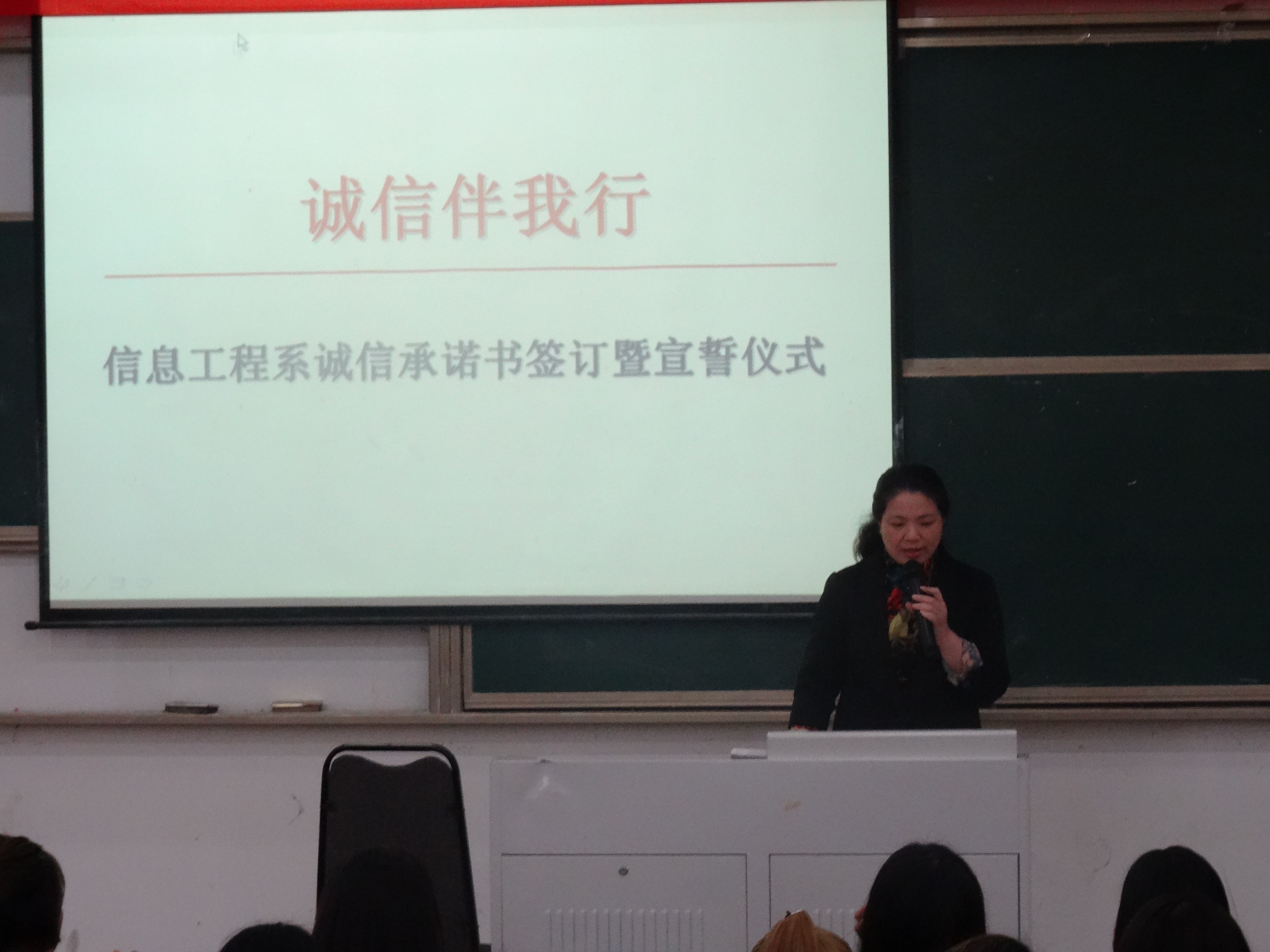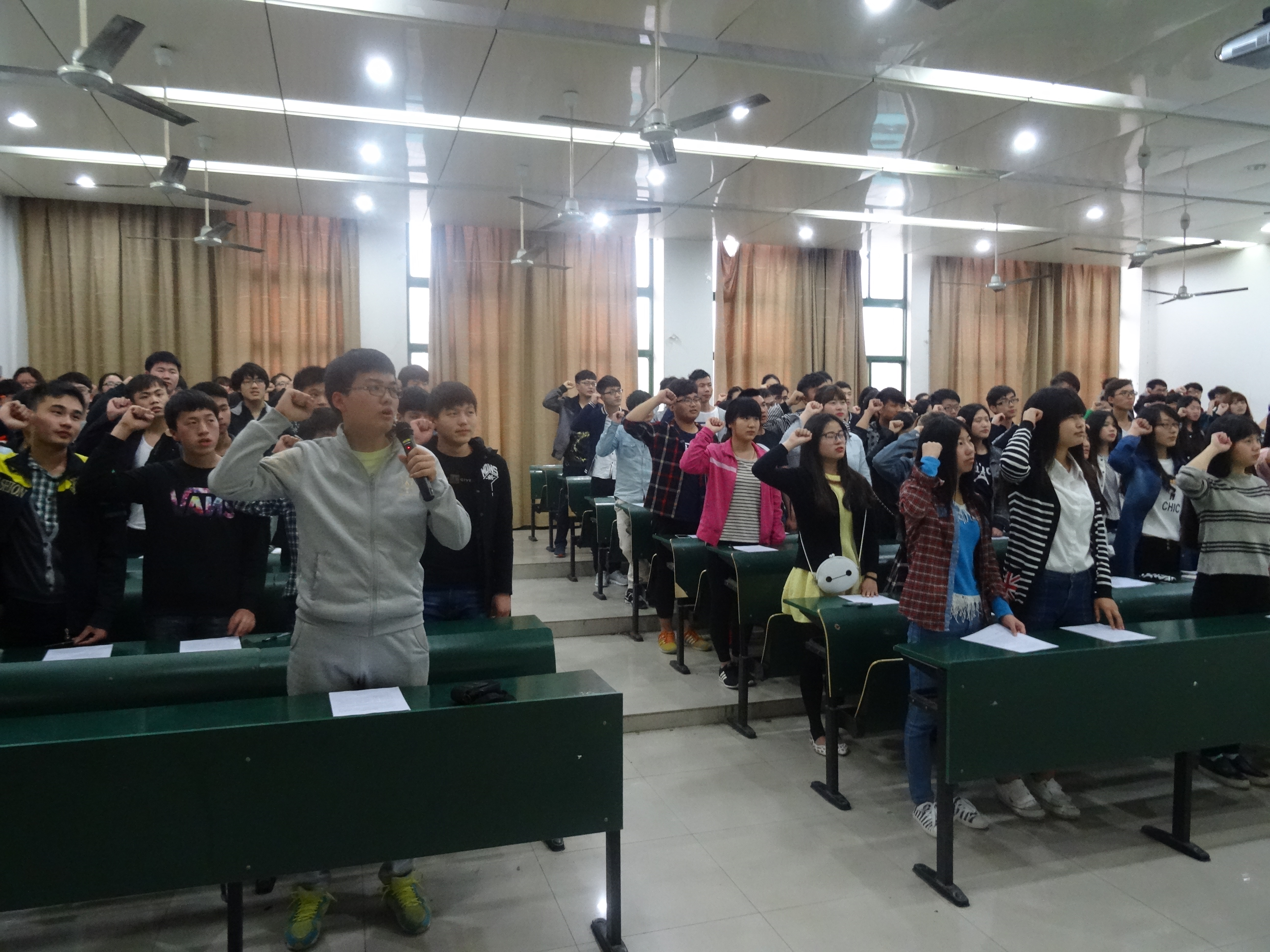 2016年4月28日下午,信息工程系组织本系14、15级贷款学生及享受各类奖助学金的经济困难学生共150余名同学在教学楼103阶梯教室集中开展《国家奖助学金自律承诺书》签订及诚信宣誓仪式。