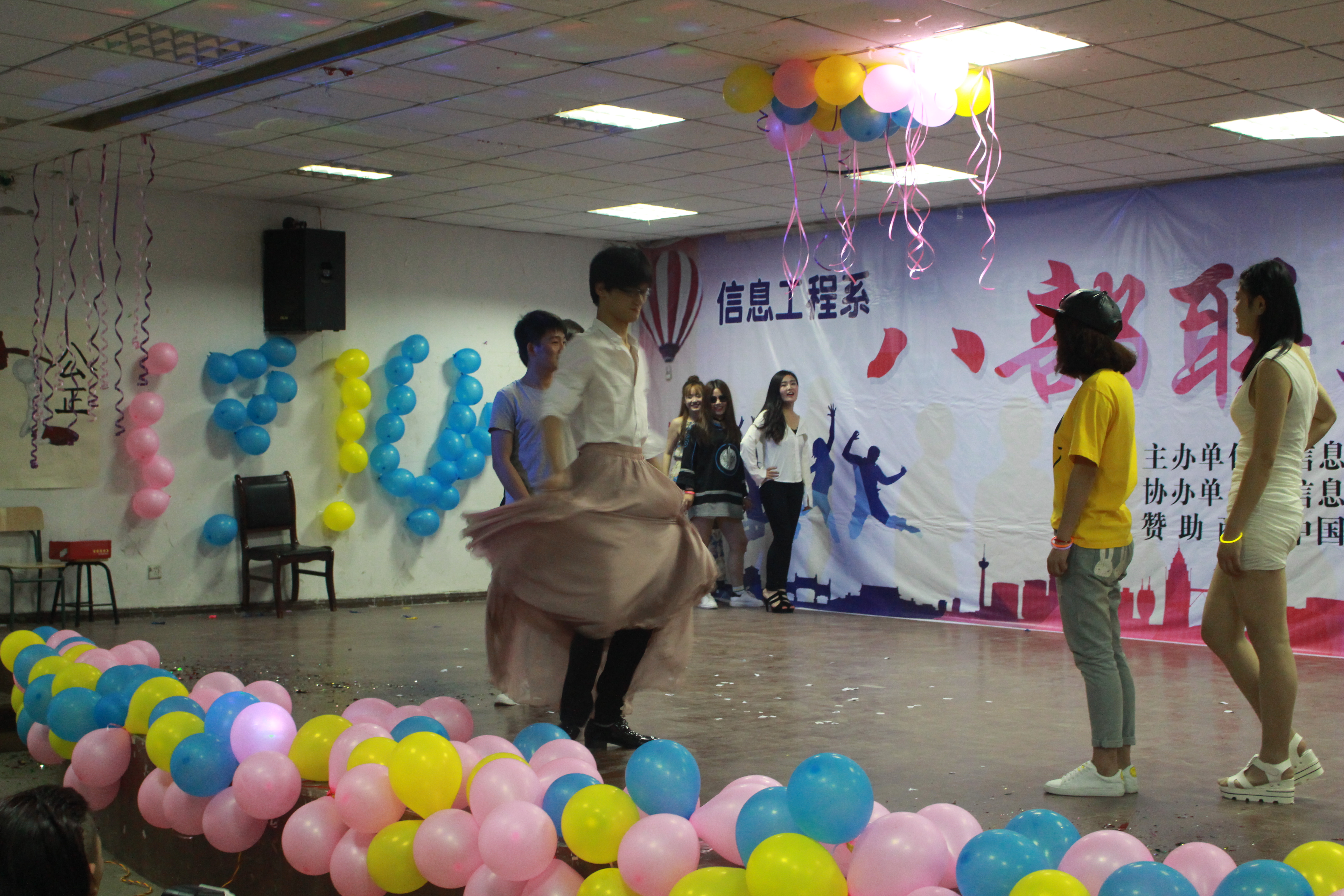 ,图文楼学生活动室气氛异常热烈,这里正在举办了一场信息系八部联欢晚会。晚会既是信息系学生会八个部门的联欢晚会,也是送老生毕业离校晚会。晚会节目丰富,有炫丽的舞蹈,动听的歌曲,令人深思的小品。同学们的卖力表演赢得了台下阵阵的掌声。