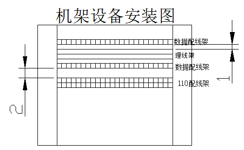 在端接实训机架上进行安装,设备安装顺序自上而下为24口网络交换机(用超五类固定式配线架代替)-理线架-超五类固定式配线架-110语音配线架,设备之间隔按照安装图设置(数据单位为“孔位”)。