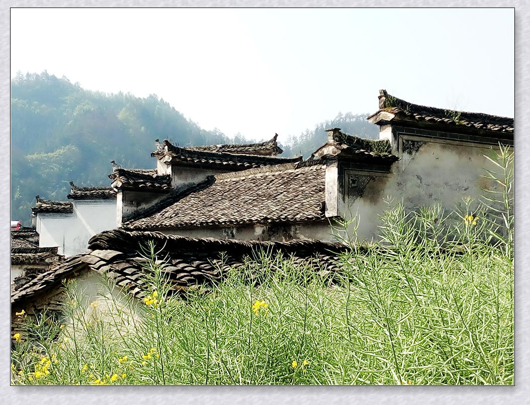 作品简介:日照屋檐上,一片丰收、亮丽的层次图。