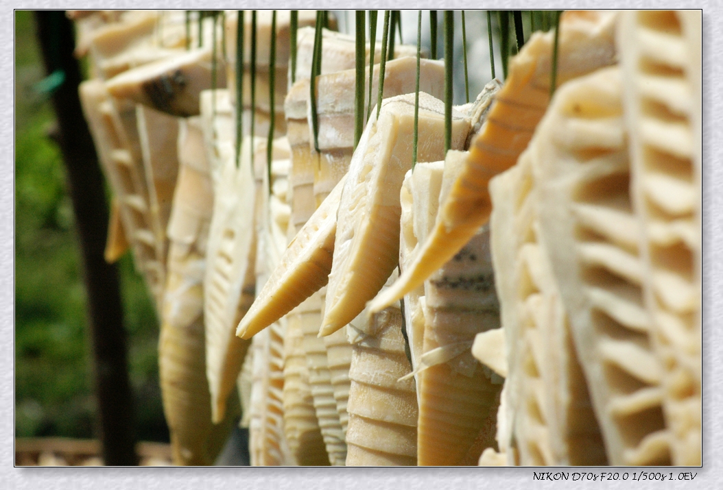 作品简介:日照屋檐上,一片丰收、亮丽的层次图。