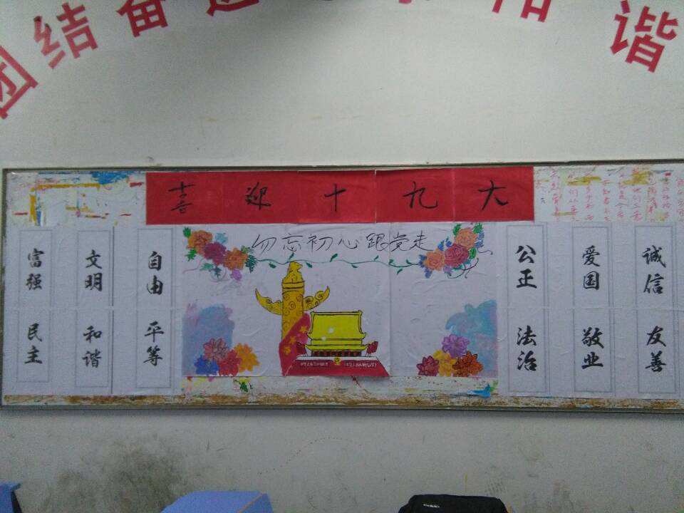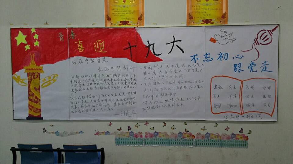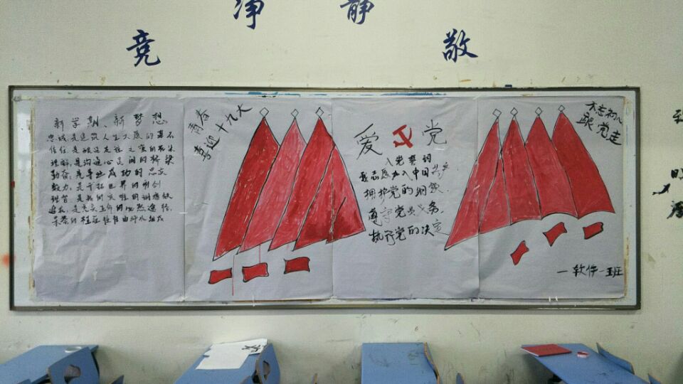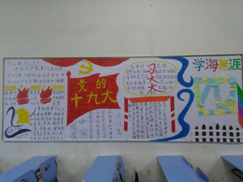 在十九大胜利召开之时,同学们为宣传十九大,特地更新板报,为十九大贡献自己的力量。