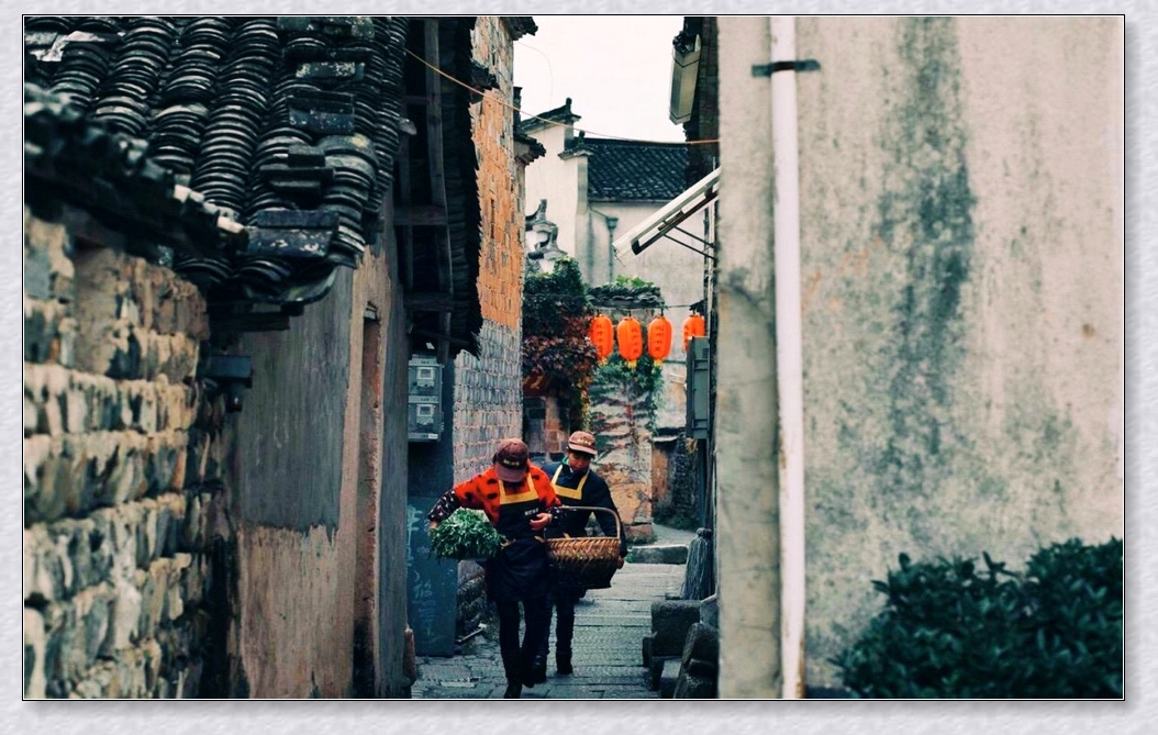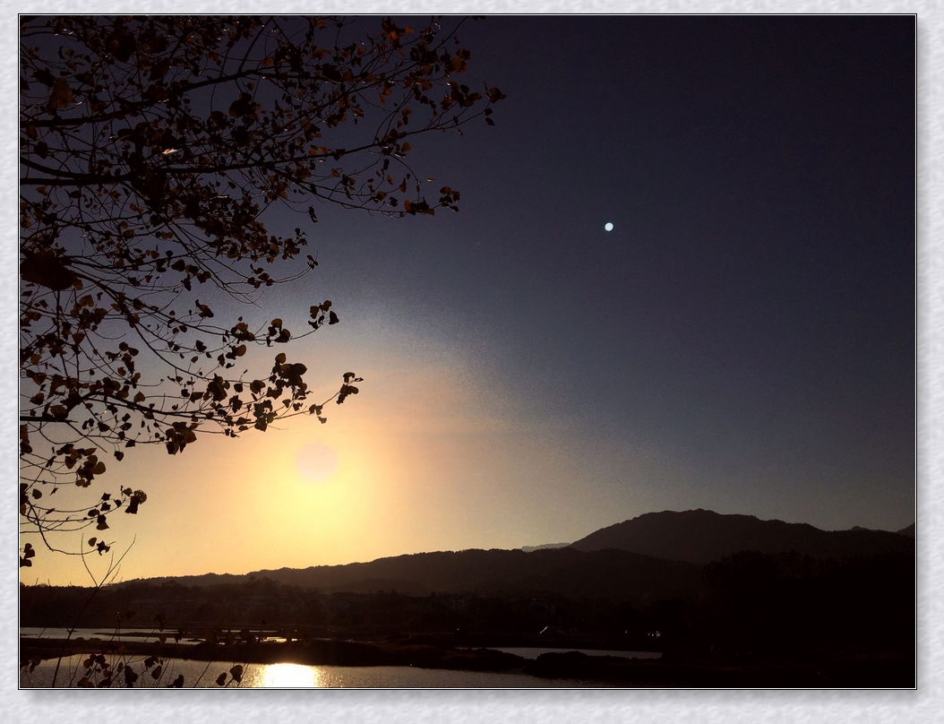 作品介绍:傍晚站在宏村外,回收看宏村,太阳慢慢的降落,一点一点的被大山挡住最后完全消失。