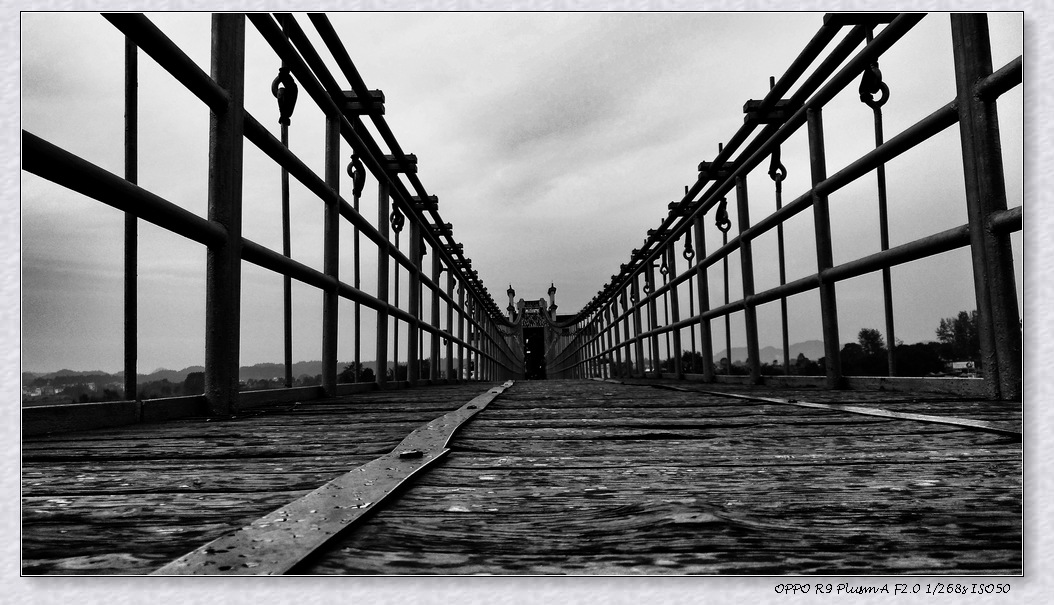作品介绍:铁锁桥上摇摇摆摆,别具一番风ζ,生满铁锈的桥充满着岁月冲刷的气息。
