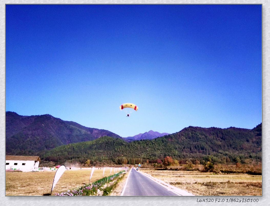 作品介绍:宽敞的道·,滑翔伞带着游玩的人们缓缓起飞,冲向自由的天空。