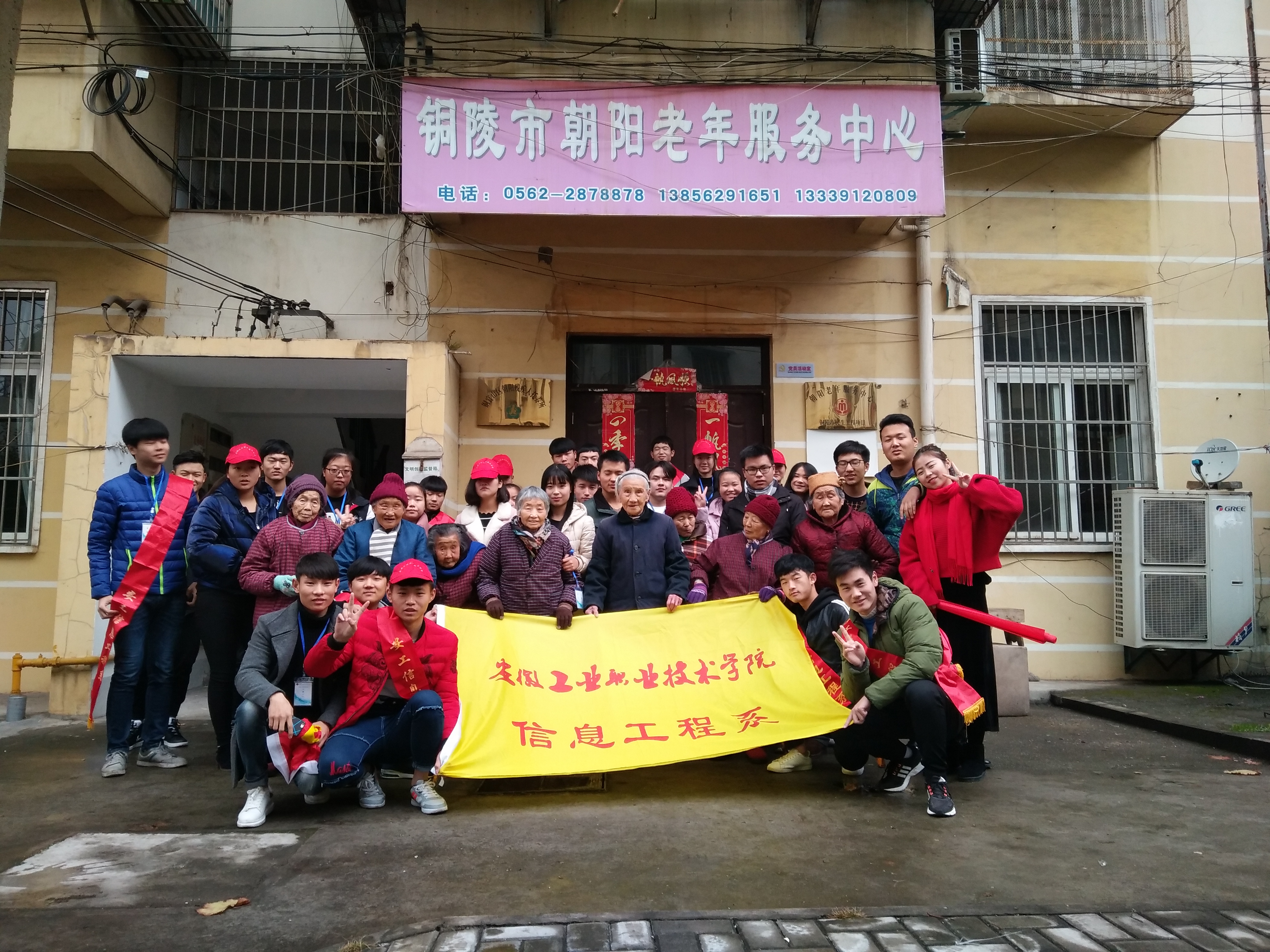 安工学院信息工程系绿色家园部干事及各班成员于2017年12月16日来到了铜陵市朝阳社区老年服务中心。