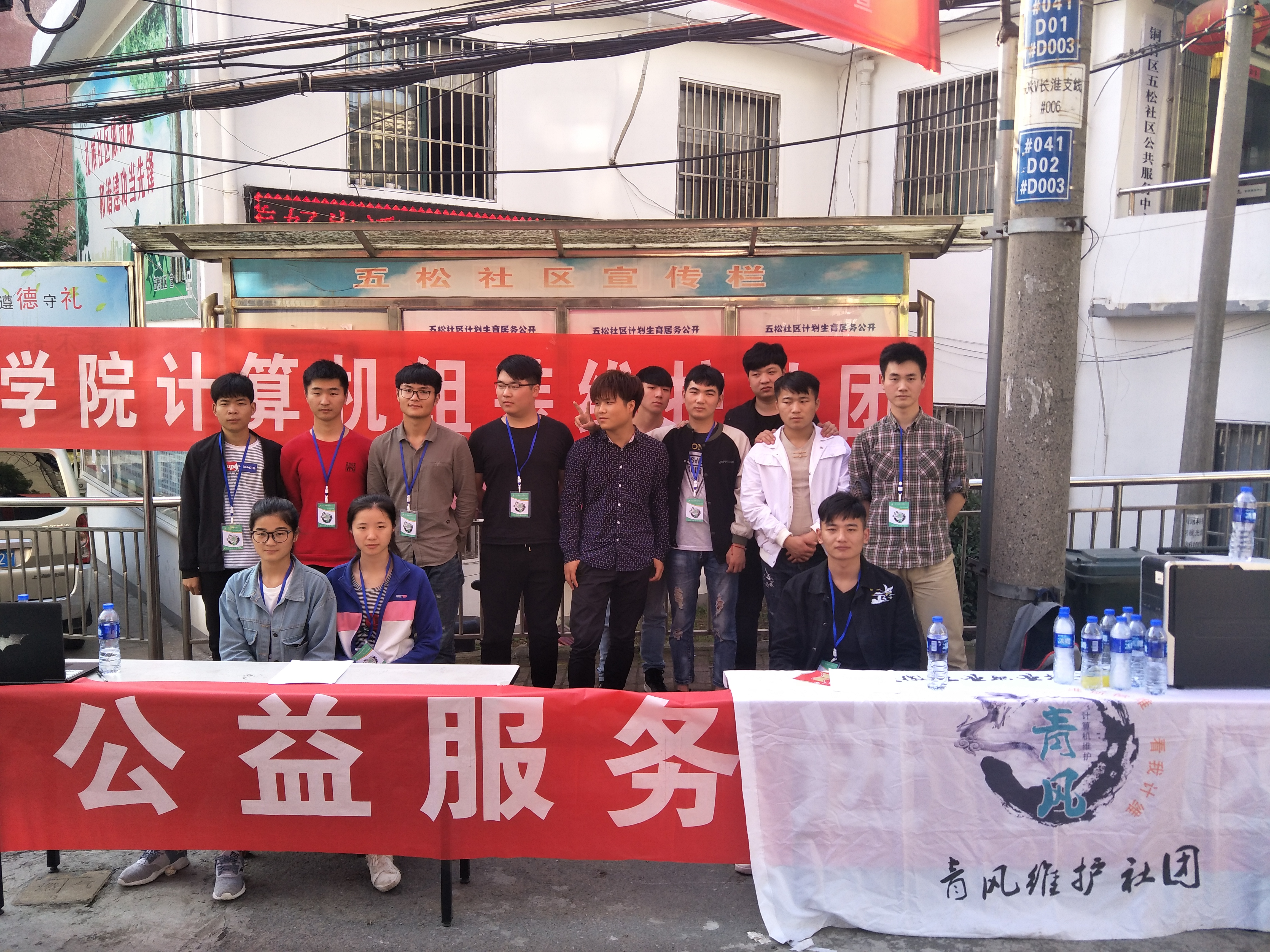 5月8号,信息工程系青风计算机维护社团成员来到五松社区,开展活动,为社区居民义务维修、维护计算机,同时还为社区居民讲解了计算机日常使用和维护的小知识。