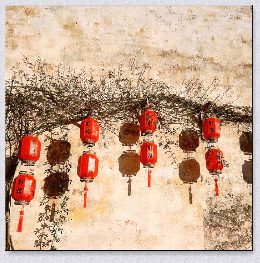 作品简介:中式的老灯笼挂在墙上,色彩格外引人注意。