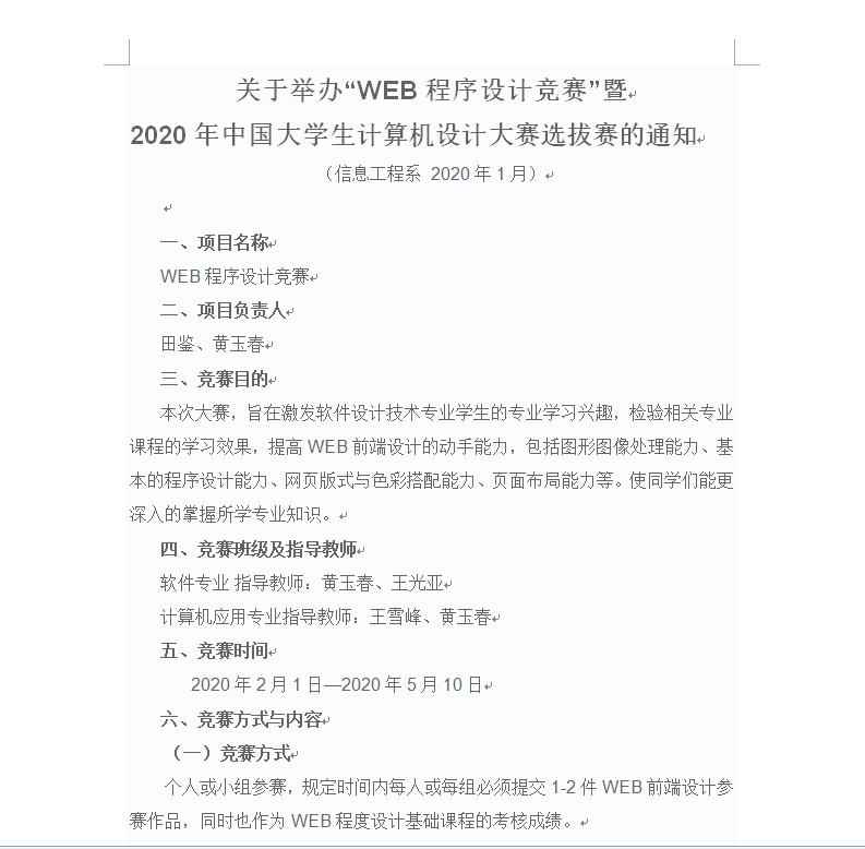 关于举办“WEB程序设计竞赛”暨2020年中国大学生计算机设计大赛选拔赛的通知