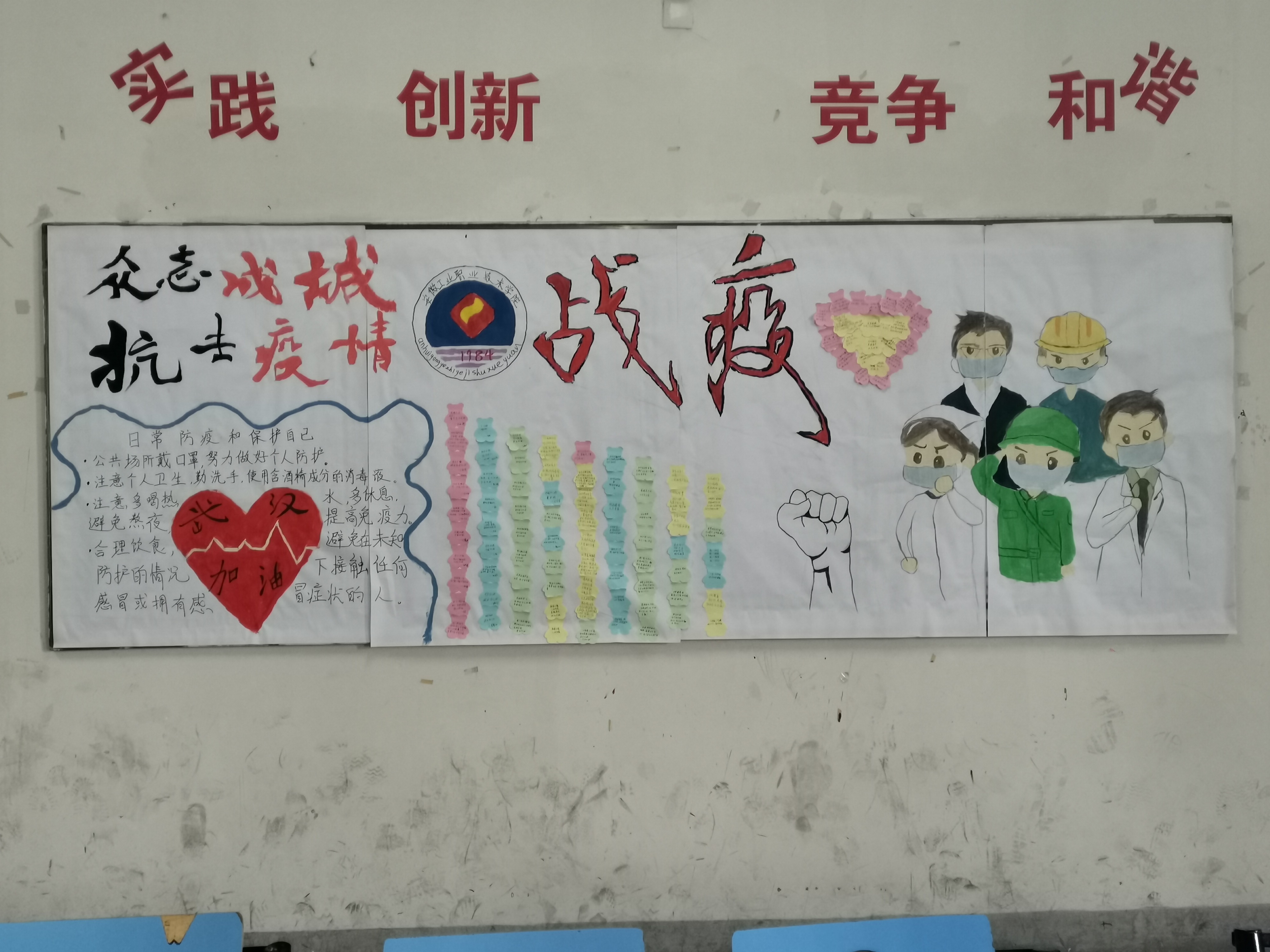 今年春节来临前夕,一场“新型冠状病毒”把我们喜庆的气氛全部打乱,病魔像乌云笼罩在我们上空,但与生命有关的一切在全力加速。在前线,有我们美丽的逆行者,他们敢于担当,满腔责任为国为民,同时间赛跑、与病魔较量,坚决抑制疫情蔓延势头,坚决打赢这场疫情防控阻击战。当前,我们已经复学,校园疫情防控的形势依然严峻,为引导青年学生深刻理解疫情防控的重要性,积极配合学院疫情防控工作,信息工程系开展“青春战役 担当有我 共筑防疫长城”主题板报评选活动。