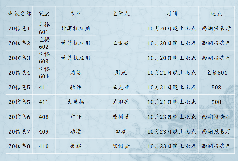 专业教育是新生入学教育的重要内容,对于学生构建专业认同、树立学习目标、激发学习积极性有着重要意义。为此,信息工程系在20级新生入学之初,组织各专业带头人来到西湖校区,进行了一系列专业教育活动。