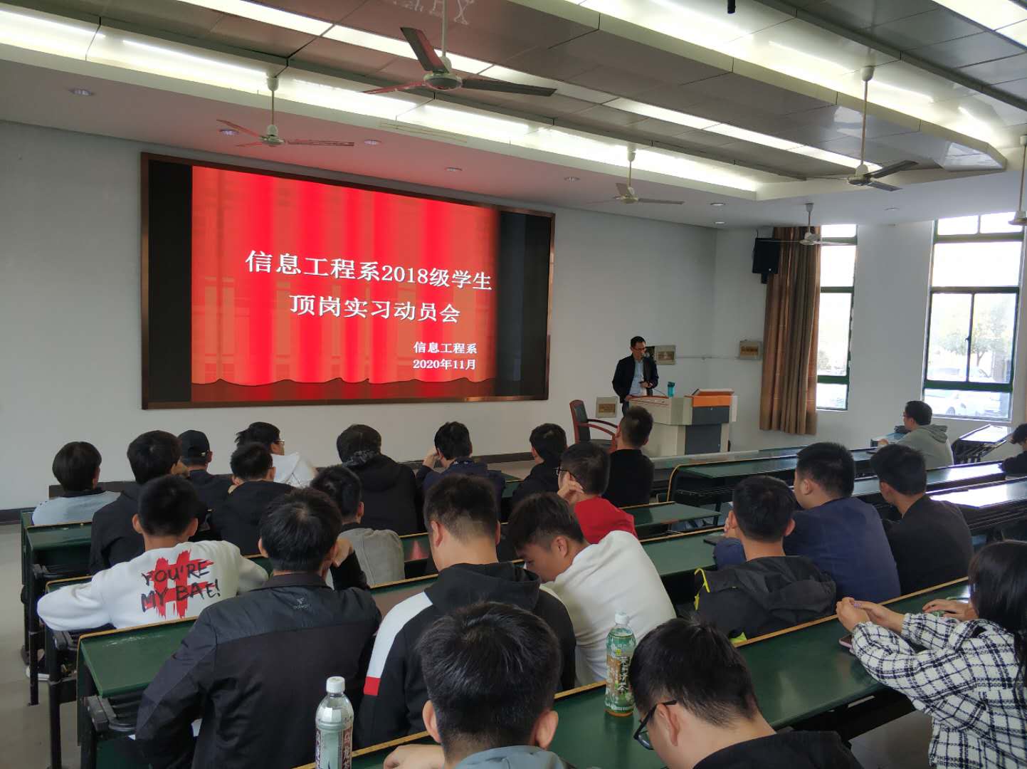 为使18级学生更深入地了解顶岗实习工作的相关政策要求,以及铜陵市政府出台的相关在铜就业优惠政策,推动毕业生在铜就业工作, 2020年11月5日下午,信息工程系在教学楼101教室召开了18级学生顶岗实习工作动员暨政策宣讲会。